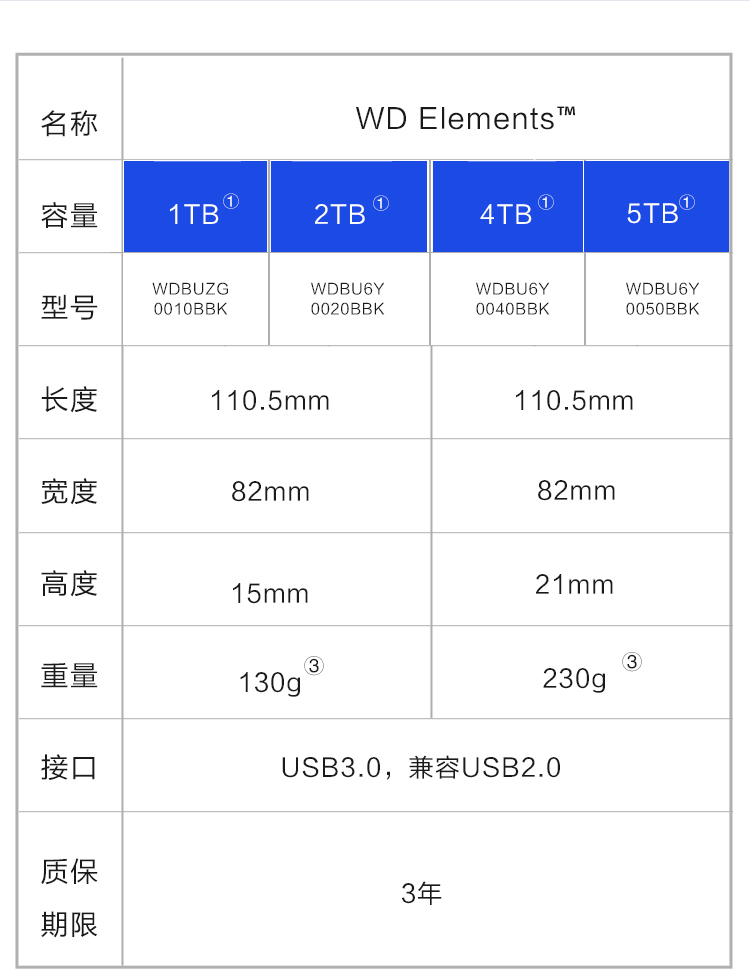 西部数据(WD) 5TB 移动硬盘 USB3.0 Elements 新元素系列2.5英寸 机械硬盘 便携 家用办公 自营
