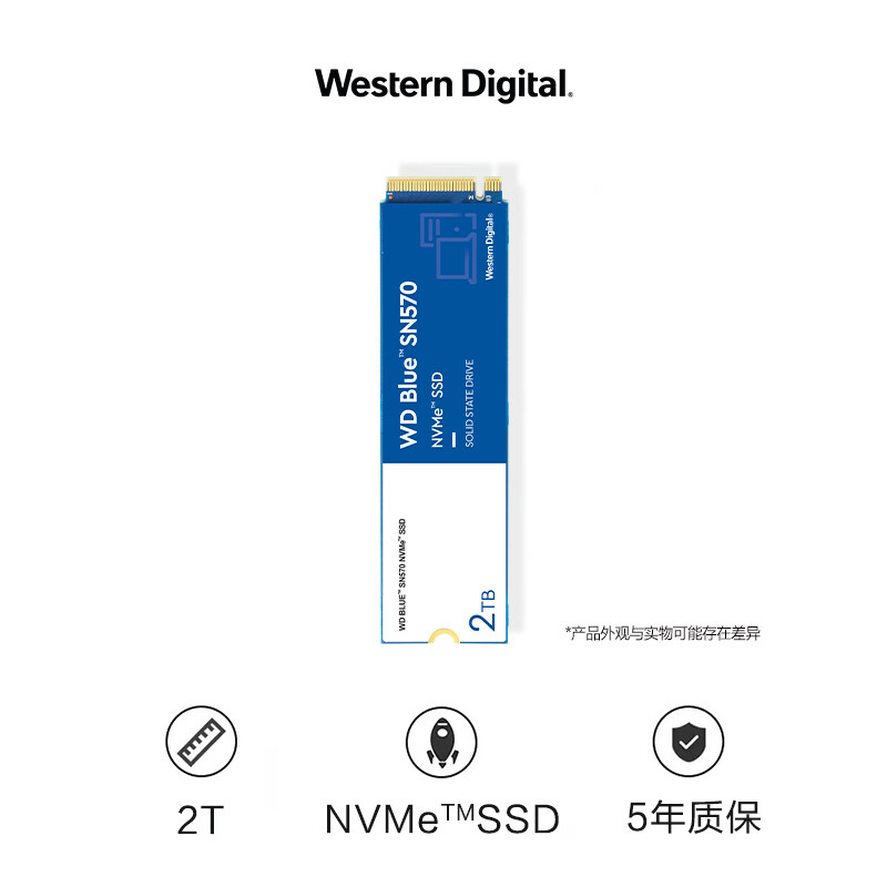 西部数据(Western Digital)2T SSD固态硬盘 M.2接口(NVMe协议) WD Blue SN570 四通道PCIe 高速 自营