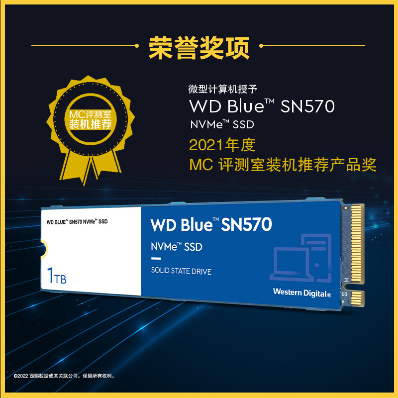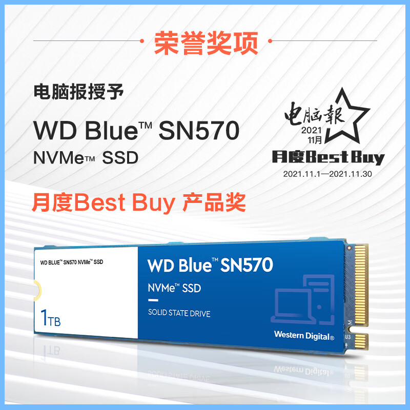 西部数据(Western Digital)500GB SSD固态硬盘 M.2接口(NVMe协议) WD Blue SN570 四通道PCIe 高速 自营
