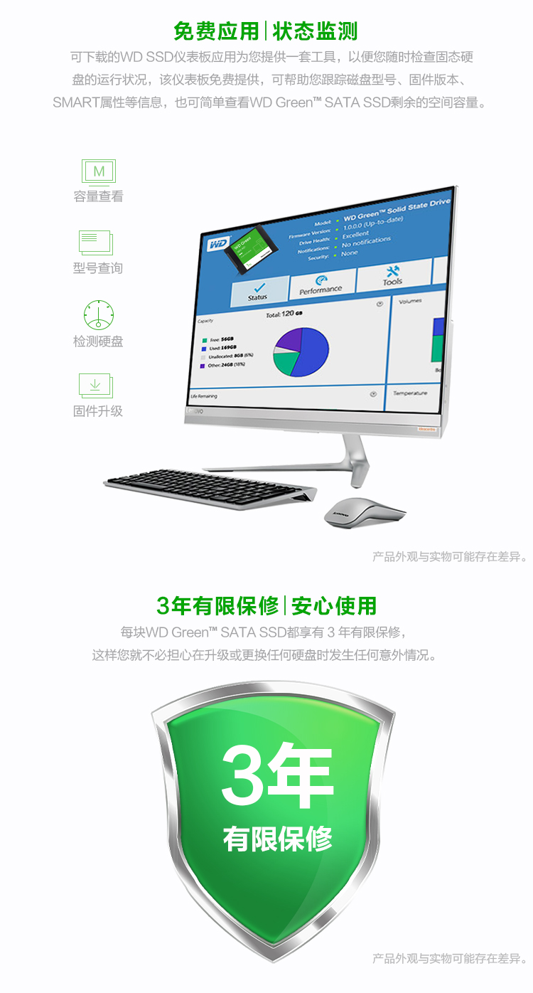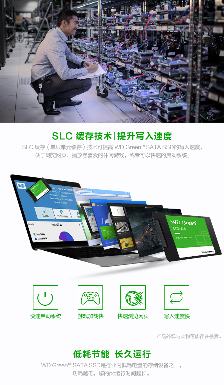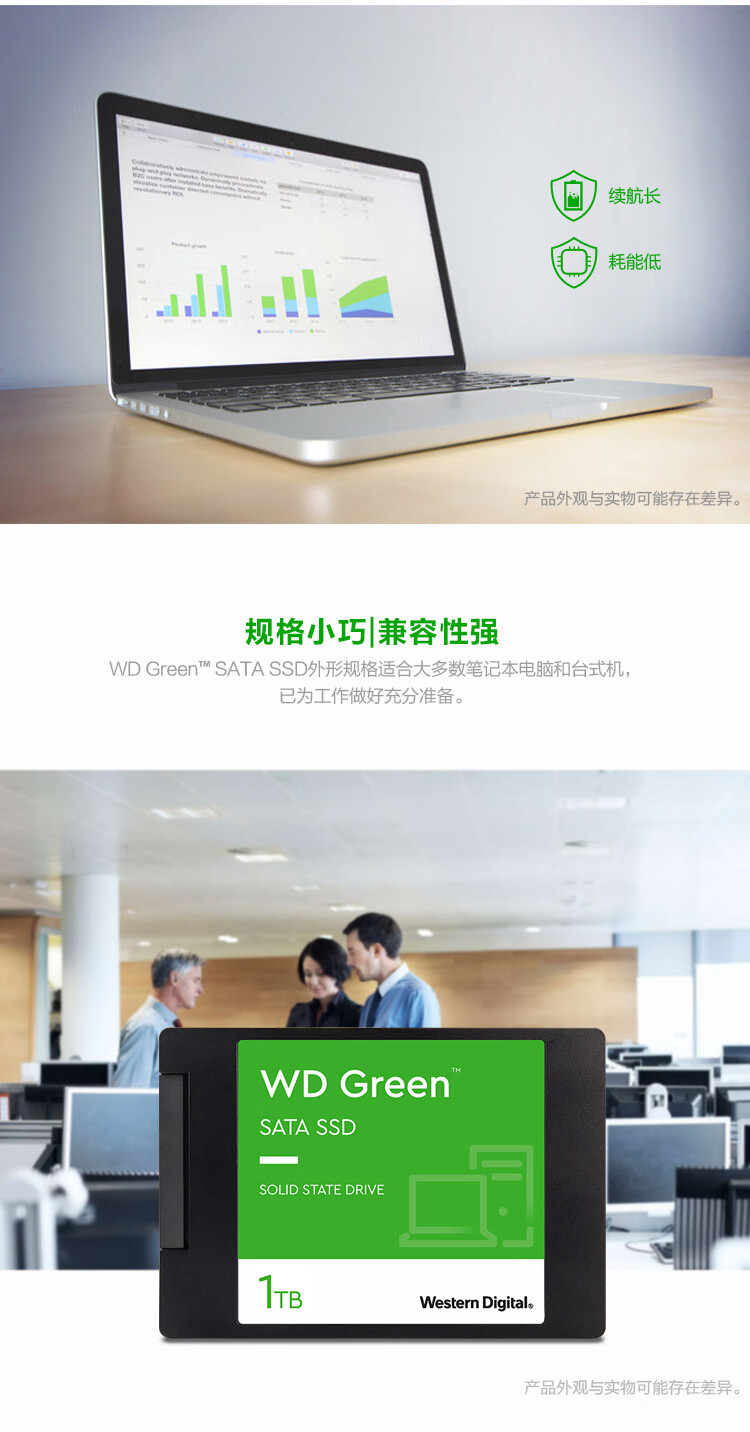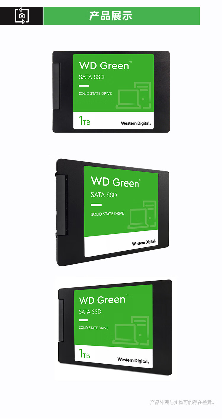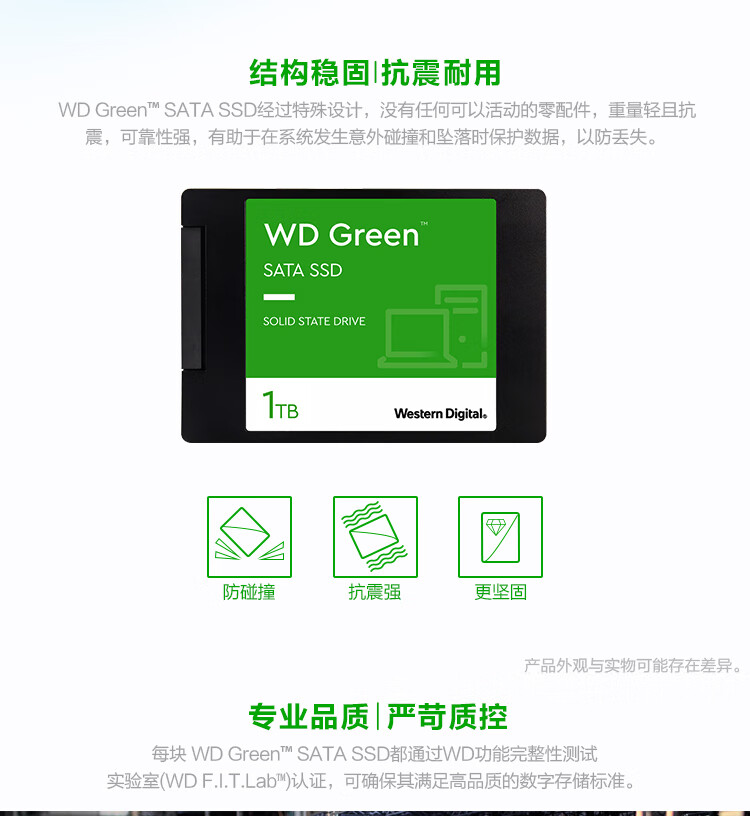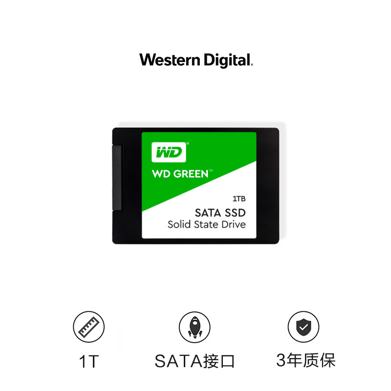 西部数据(WD) 1T SSD固态硬盘 SATA3.0 Green系列 家用普及版 高速 低耗能 自营