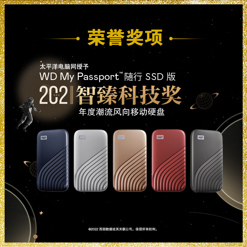 西部数据(WD)1TB NVMe 移动固态硬盘(PSSD) My Passport随行SSD版 深空灰 Type-C接口 防摔 加密 自营