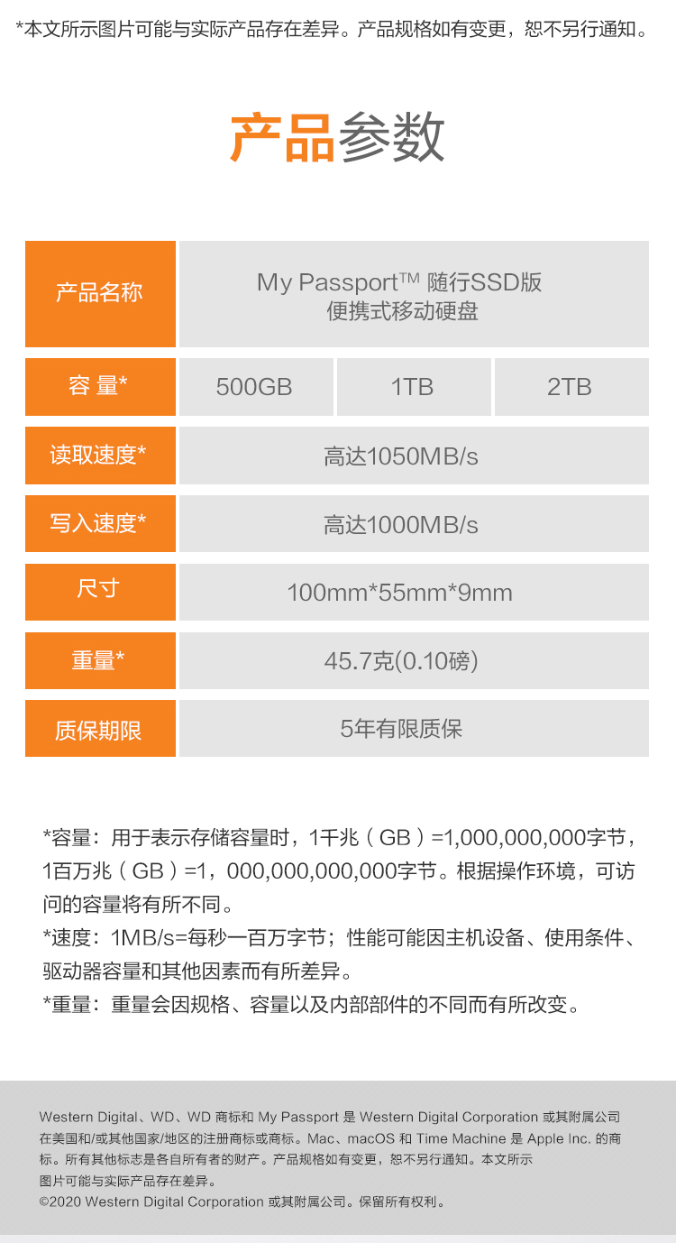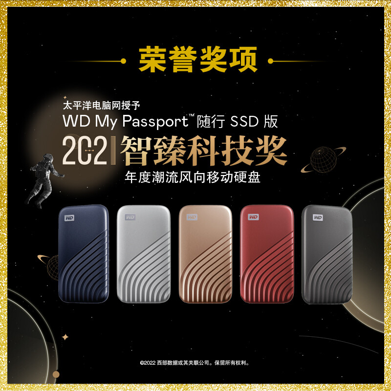 西部数据(WD)1TB NVMe 移动固态硬盘(PSSD) My Passport随行SSD版 宇宙蓝 Type-C接口 防摔 加密 自营