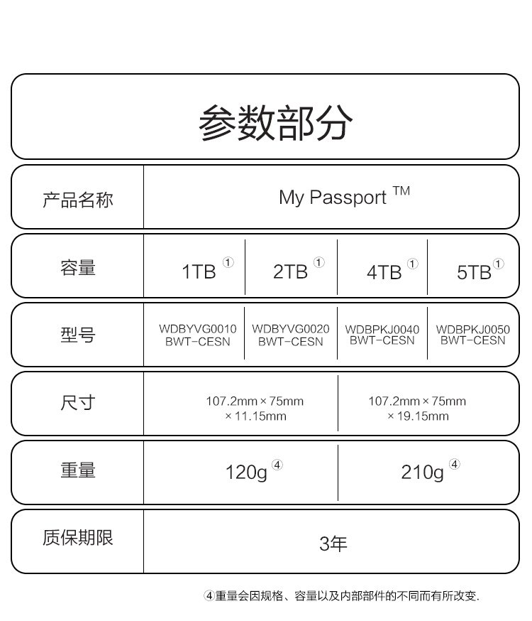 西部数据(WD) 2TB 移动硬盘 USB3.0 My Passport随行版 2.5英寸 蓝色 机械硬盘 便携 自动备份 兼容Mac 自营