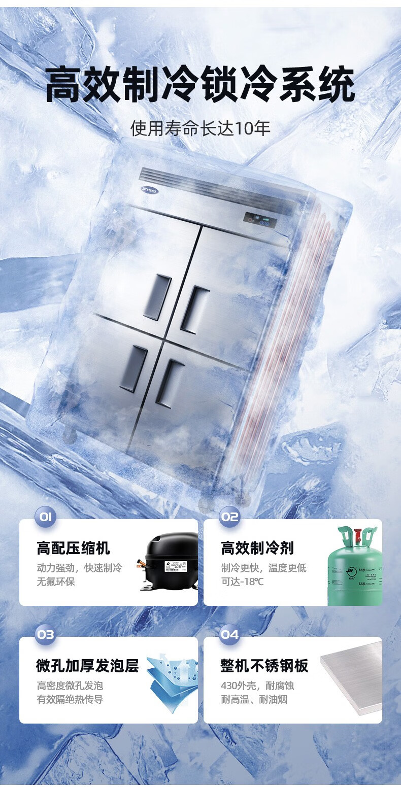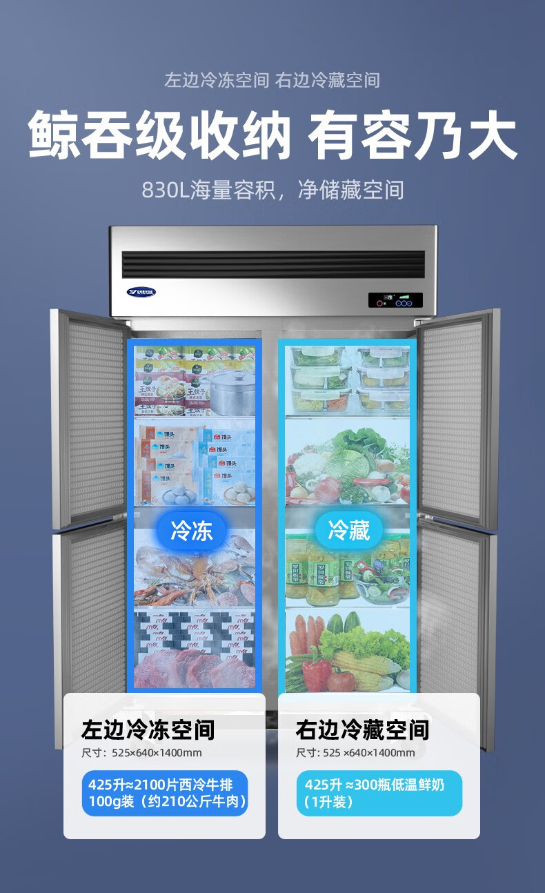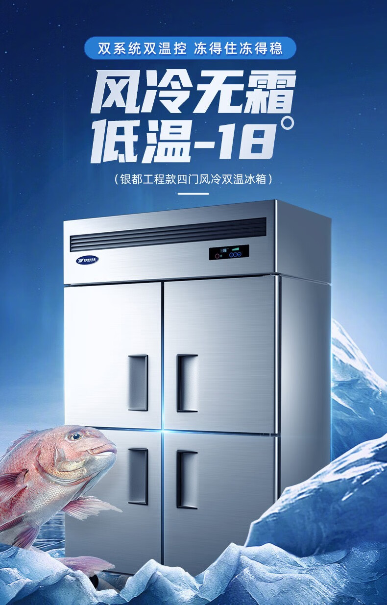 银都工程款商用四门冰柜立式冷藏冷冻保鲜展示柜冷柜双门不锈钢酒店后厨工程款冰箱 四门风冷双温(冷藏+冷冻)质保三年 自营