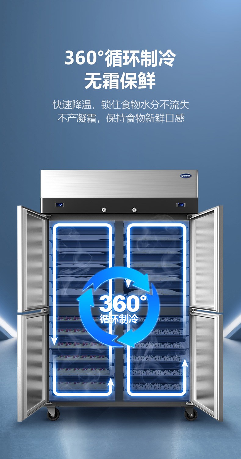 银都 工程款烤盘四门冰箱商用冷藏冷冻烘焙冰柜六门立式酒店风冷无霜插盘式慕斯披萨托盘速冻机 六门单温冷冻 自营