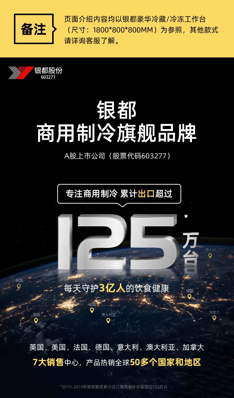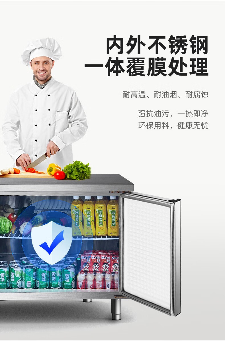 银都 冷藏工作台操作台冰柜商用冰箱卧式冷藏柜奶茶店水吧操作台不锈钢厨房保鲜冷柜平冷 全冷藏工作台经济款 二级能效(5~-5℃) 长1.8米 宽0.6米 高0.8米 自营