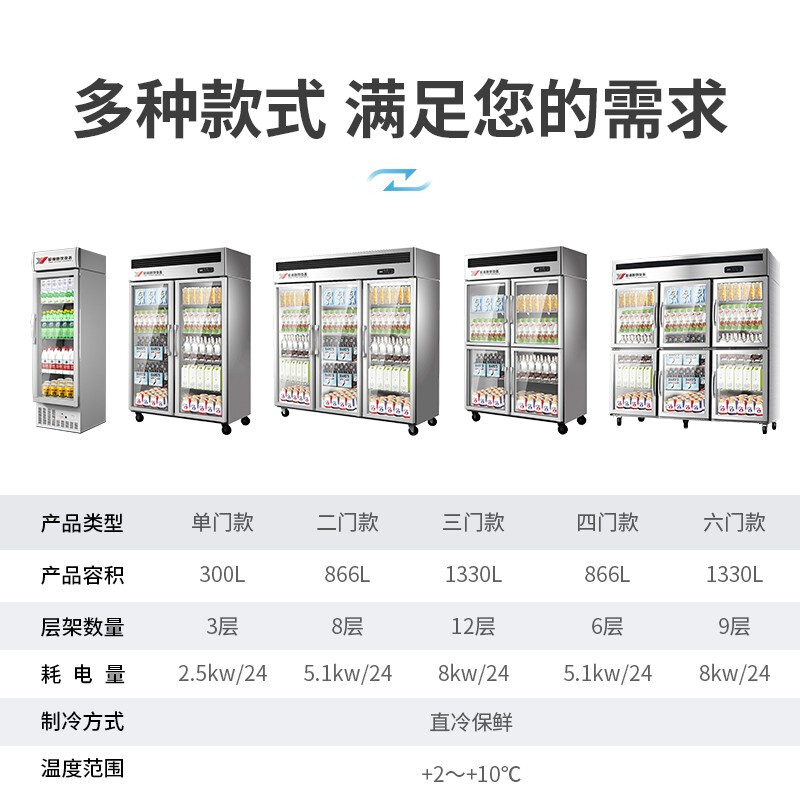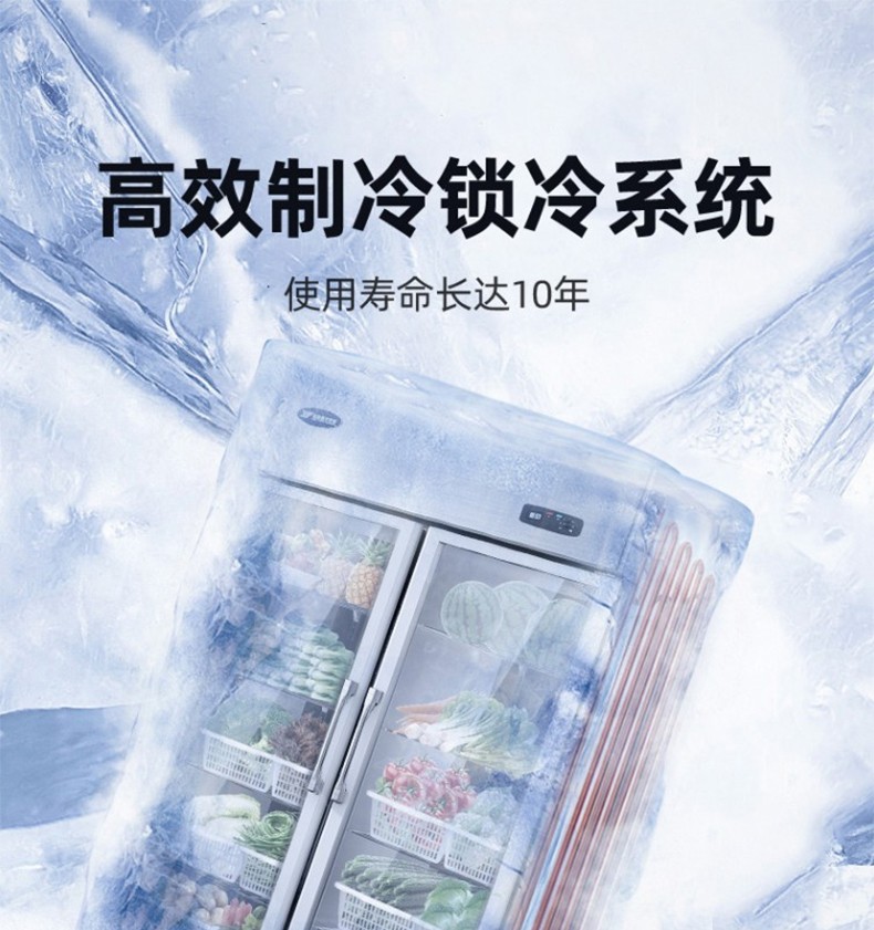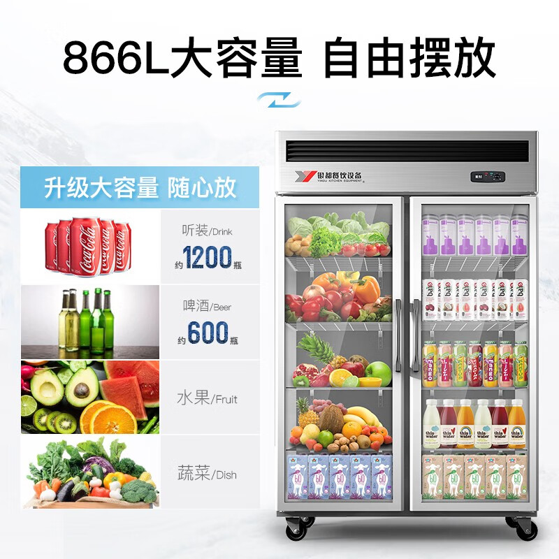 银都商用透明门保鲜柜冷藏展示柜商用点菜柜饮料陈列柜 经济款大二门展示柜 二级能效 展示柜 自营