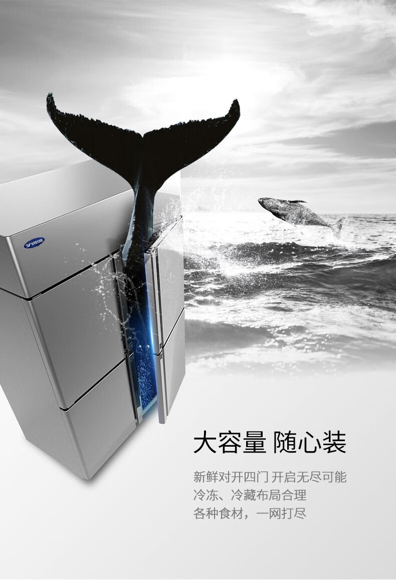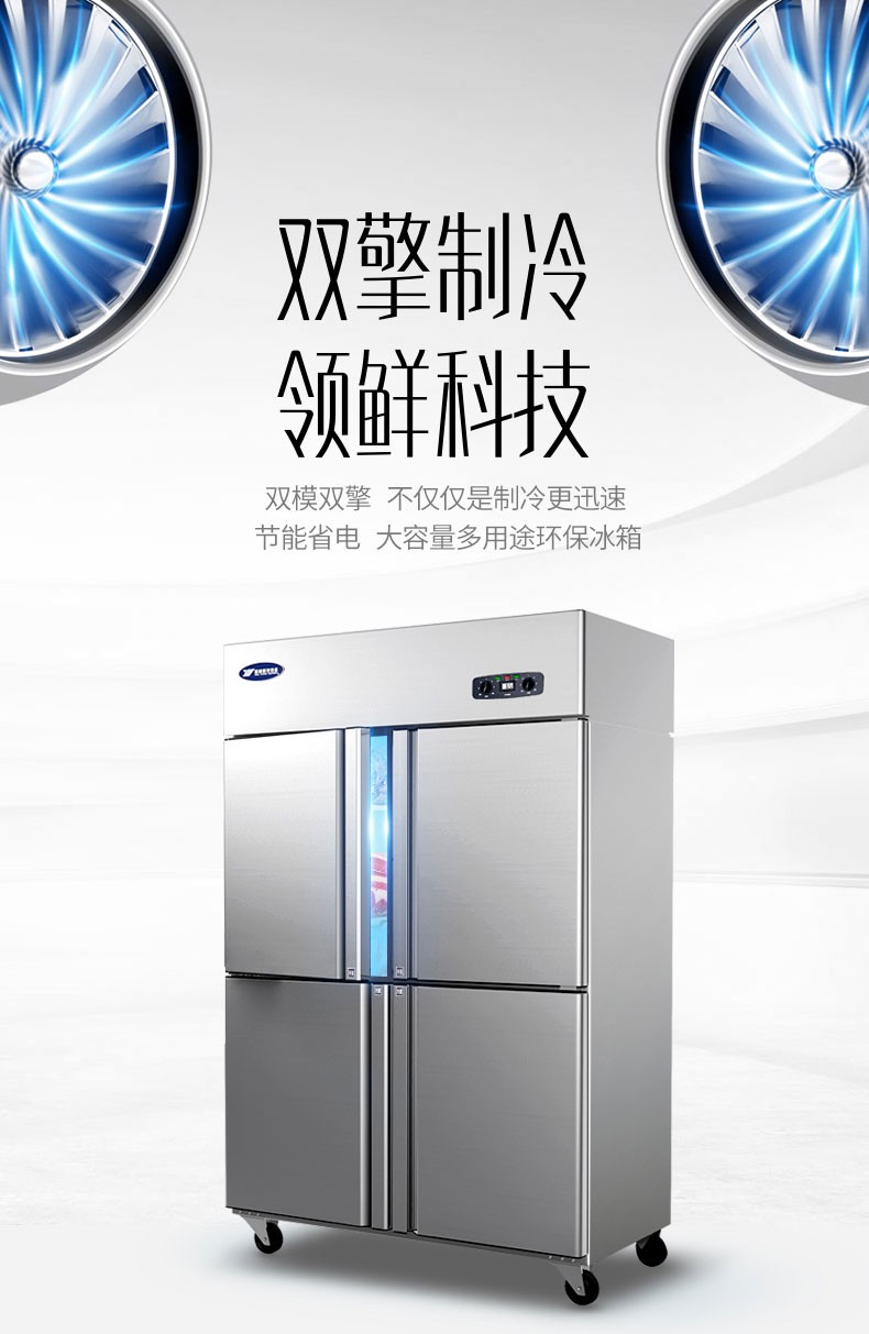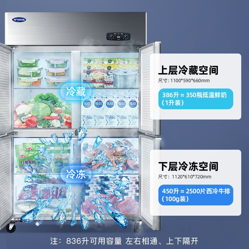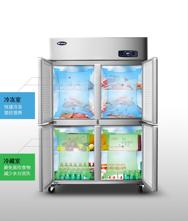 银都 四门冰箱商用冰柜厨房立式不锈钢保鲜柜酒店后厨大容量4门冷藏柜 四门双温豪华款(上冷冻 下冷藏)二级能效 自营