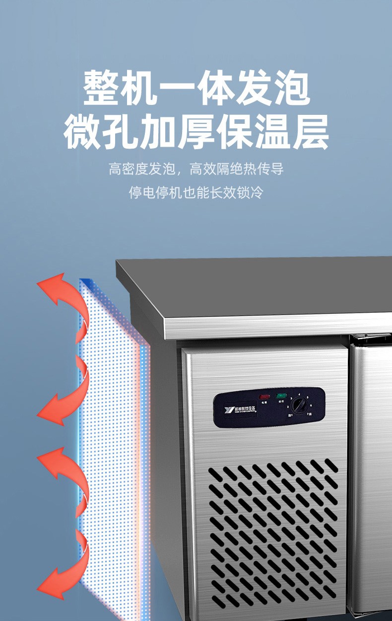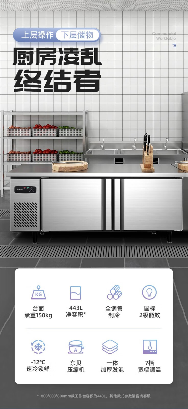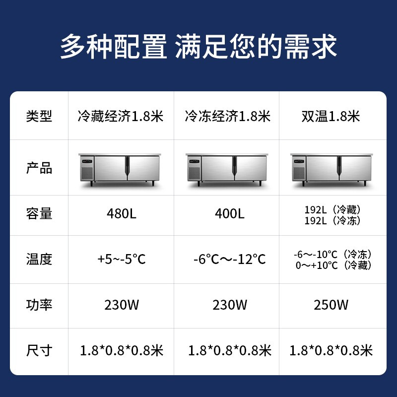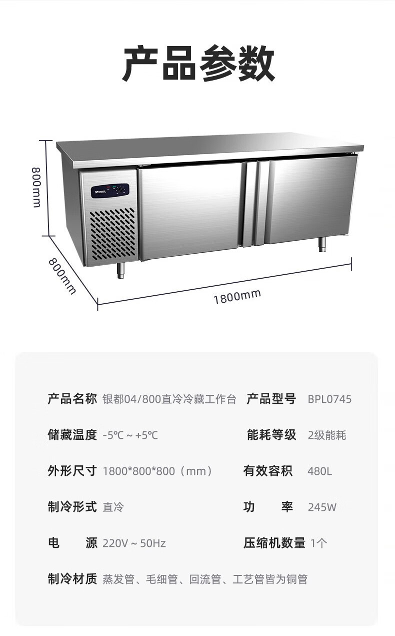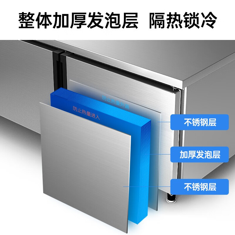 银都 冷藏工作台保鲜平冷操作台冰柜商用冰箱卧式冷藏柜奶茶店水吧操作台不锈钢厨房冷柜 双温工作台豪华款 二级能效 长1.8米 宽0.8米 高0.8米 自营