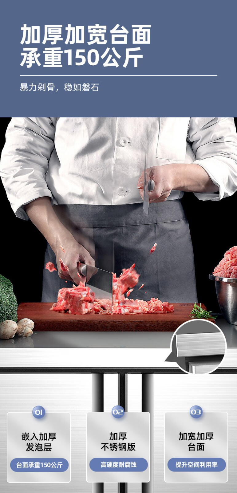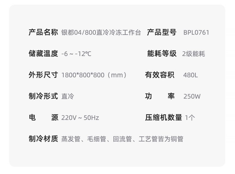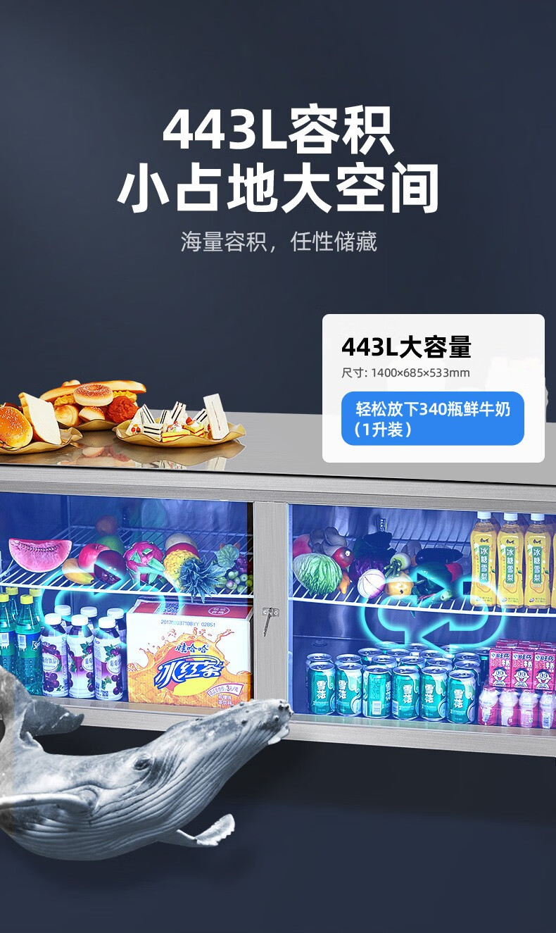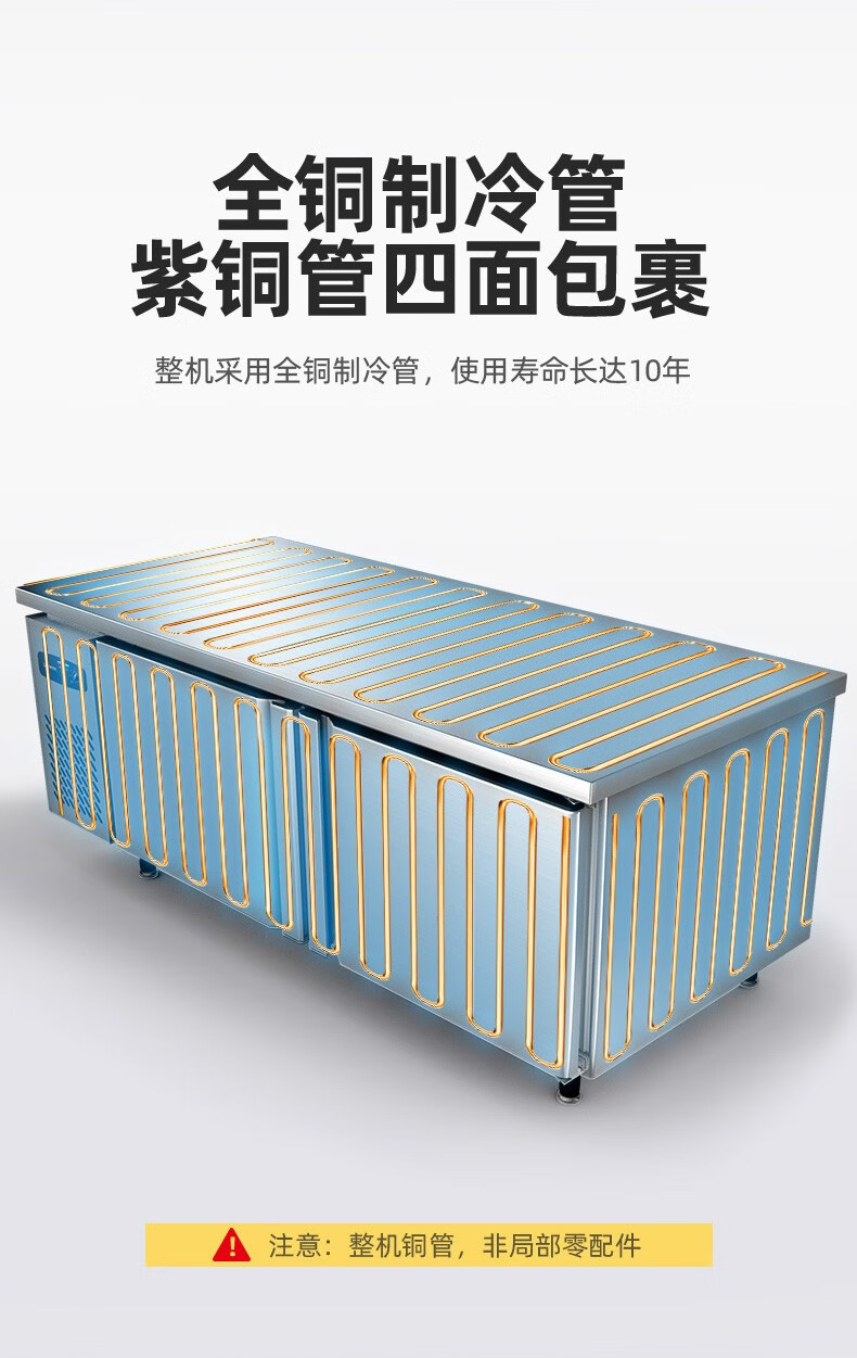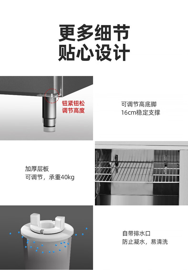 银都 冷藏工作台保鲜平冷操作台冰柜商用冰箱卧式冷藏柜奶茶店水吧操作台不锈钢厨房冷柜 双温工作台豪华款 二级能效 长1.8米 宽0.8米 高0.8米 自营