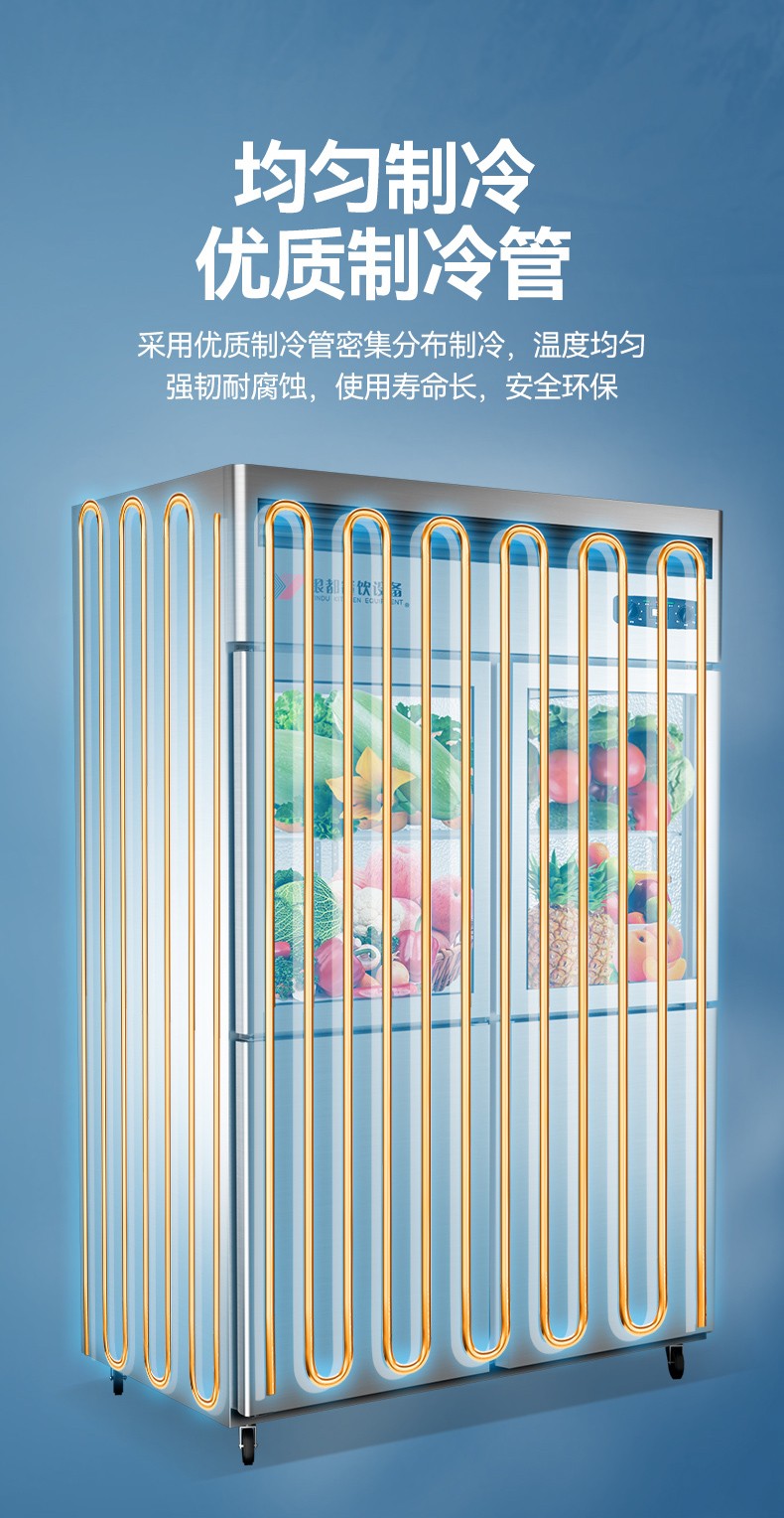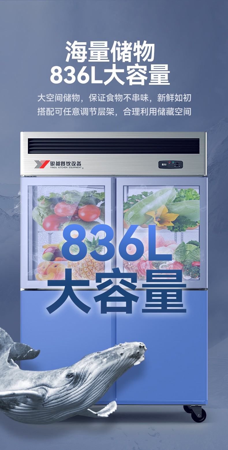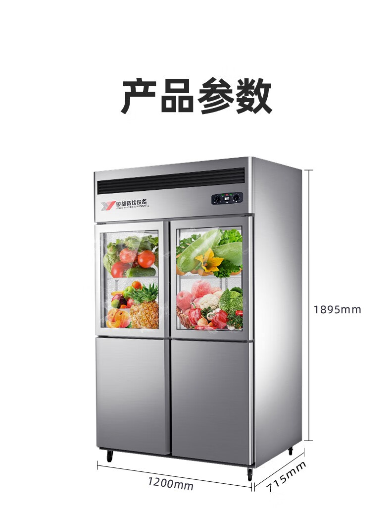 银都四门厨房冰箱商用冰柜厨房立式不锈钢蔬菜保鲜柜酒店后厨大容量冷藏玻璃门展示柜 四门双温邦迪管(冷藏+冷冻)(-12~+10℃) 自营