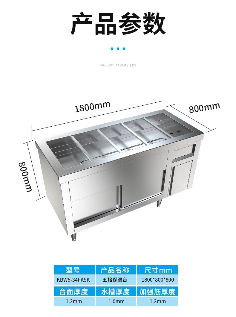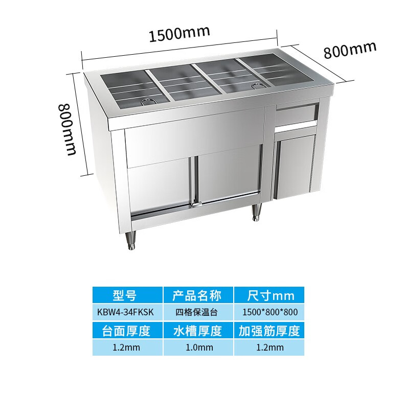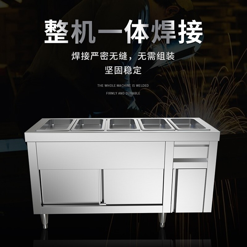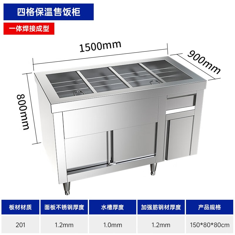 银都商用食堂餐厅不锈钢售饭台售菜保温台一体焊接 四格保温售饭台(长1.5*宽0.8*高0.8) 自营