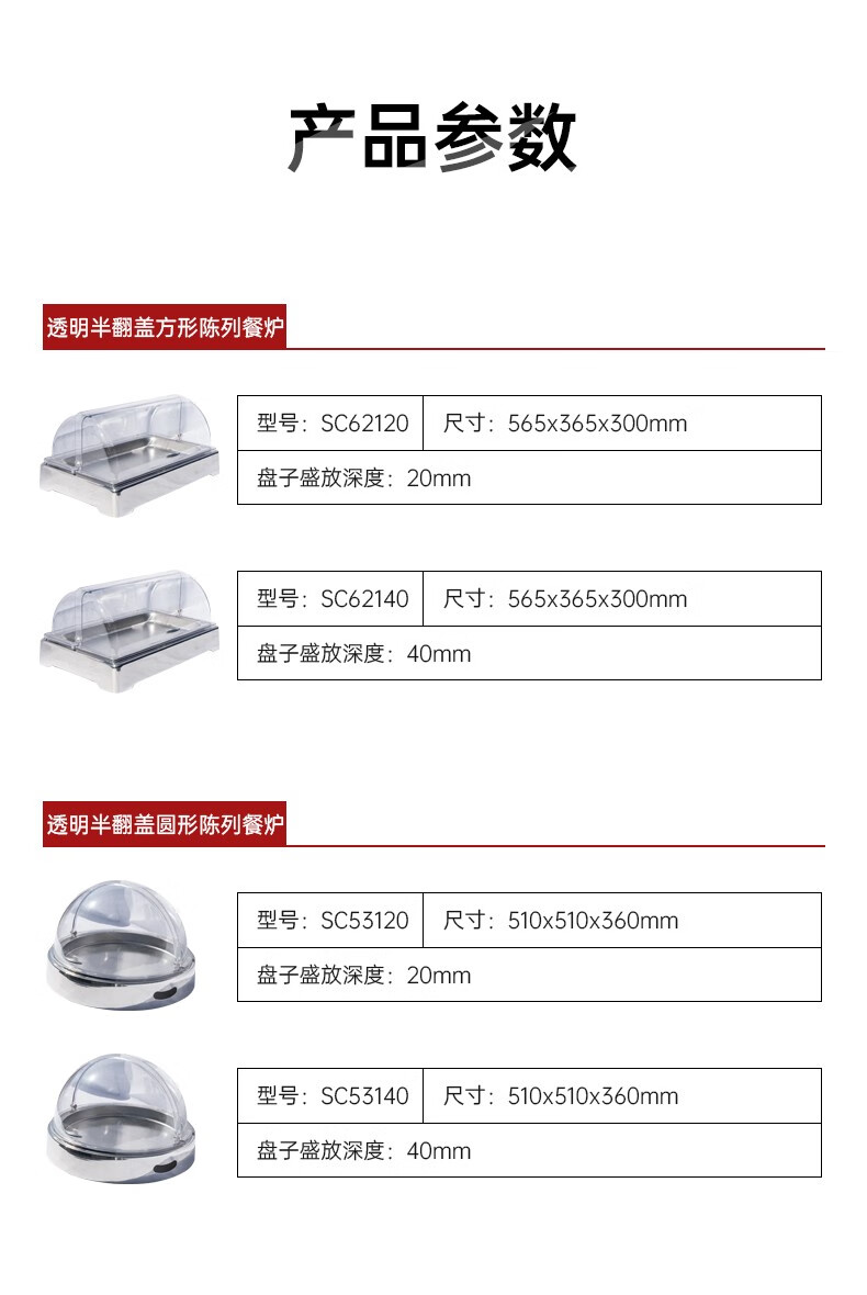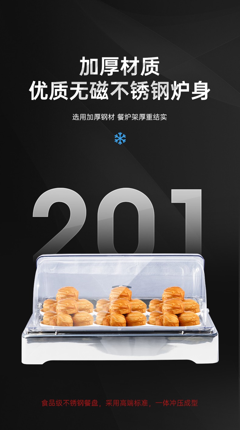 银都Atosa不锈钢自助餐炉布菲炉可视透明翻盖酒店早餐保温炉餐具 KS53120圆形常温 自营