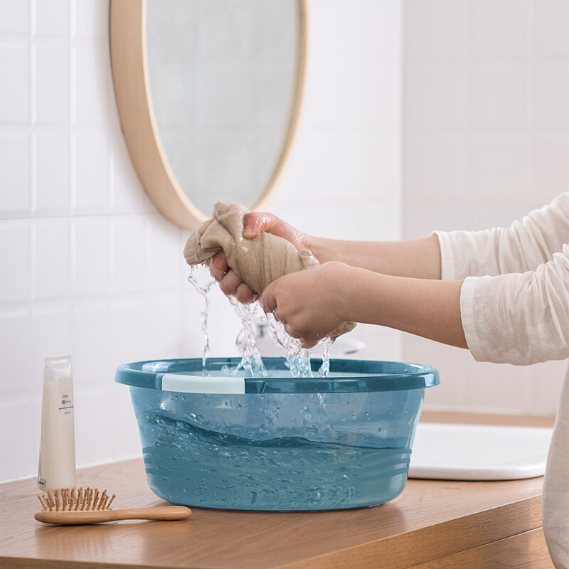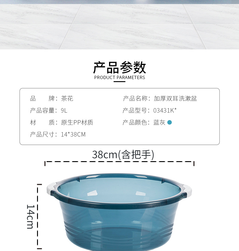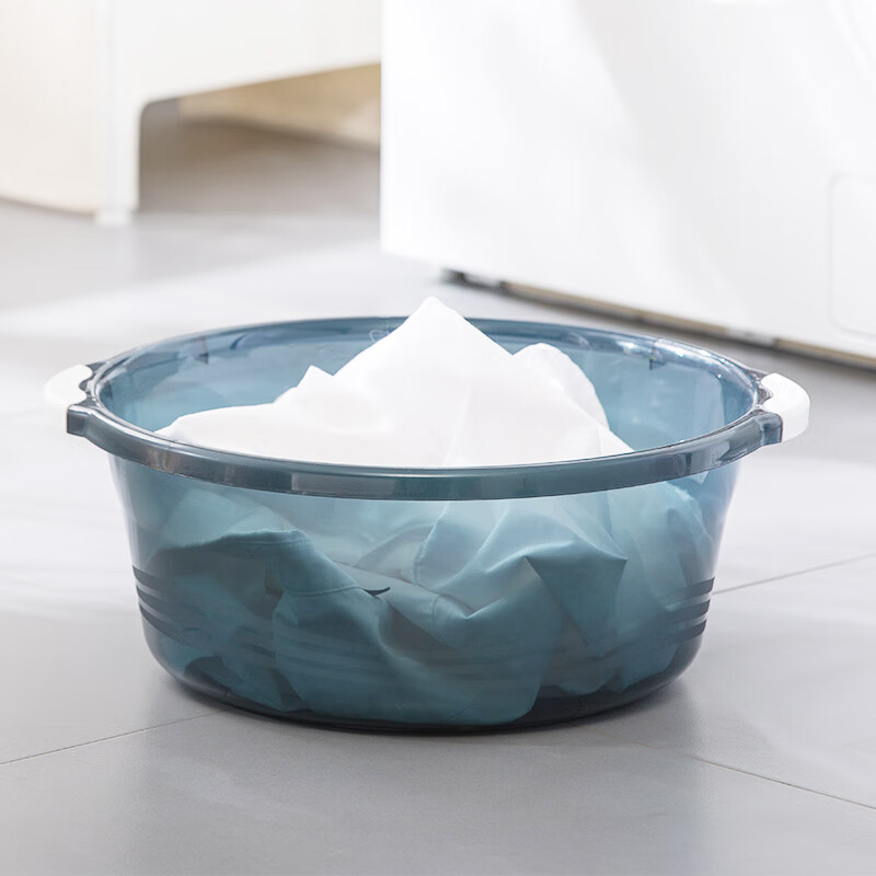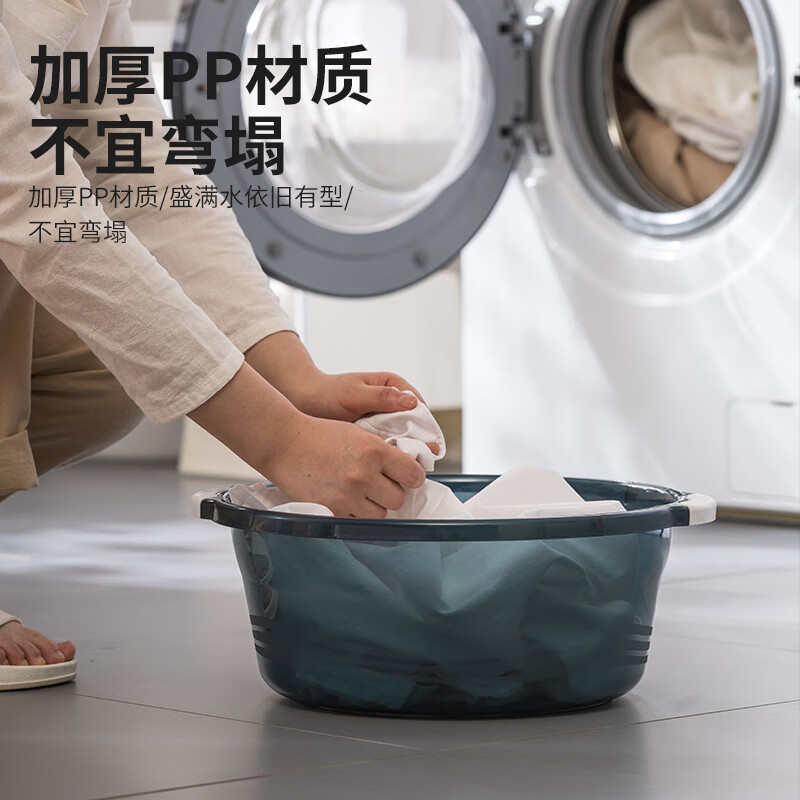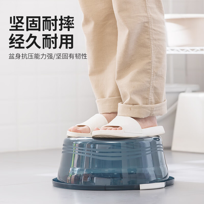 茶花 洗脸洗头盆 婴儿洗澡盆 塑料盆子洗衣盆 浴盆大水盆38cm 蓝灰 1只装 自营