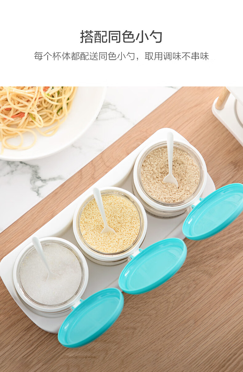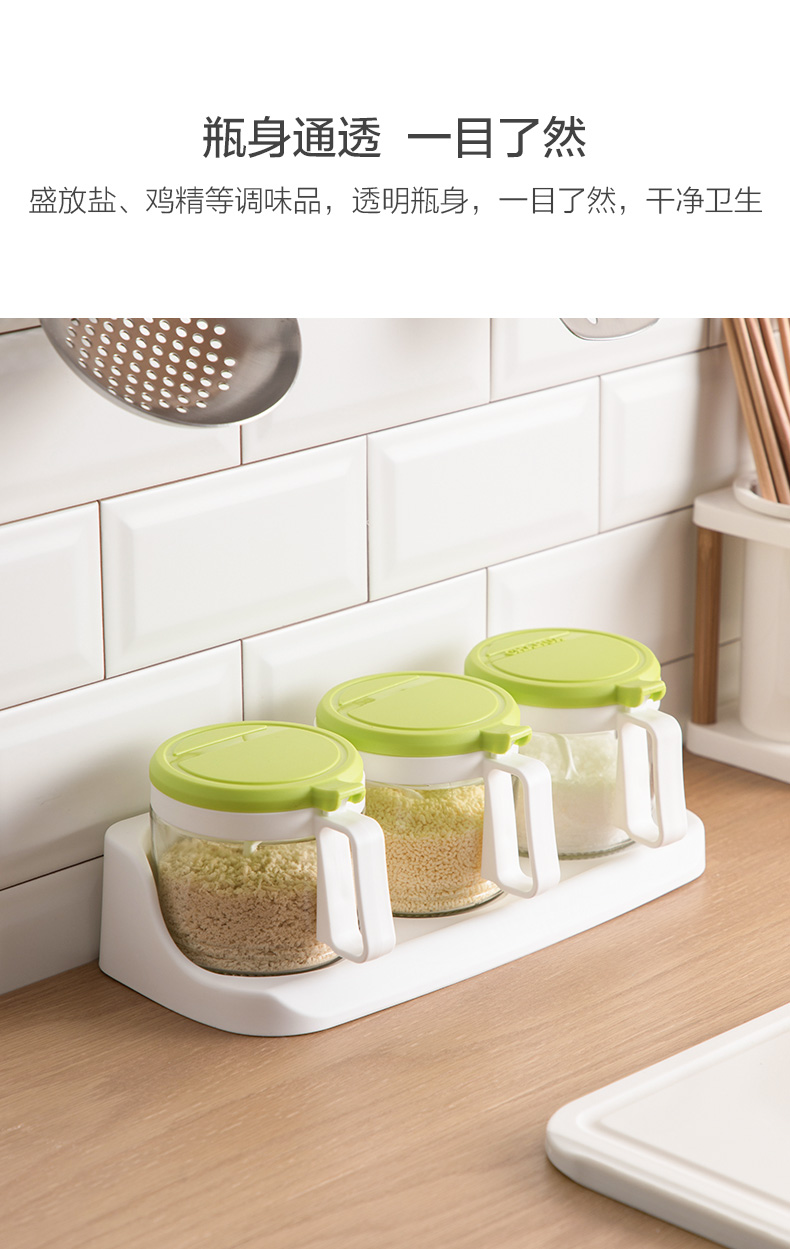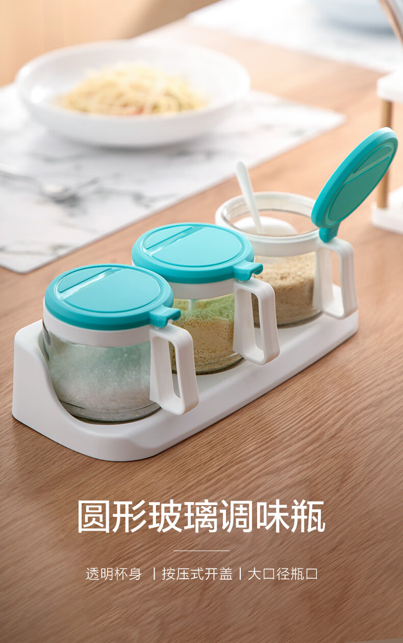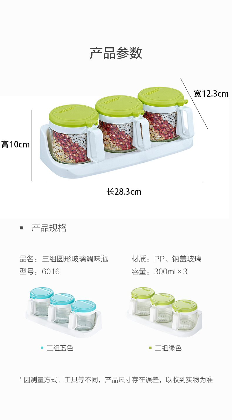 茶花 三组圆形玻璃调味瓶调料盒架 盐罐大号烧烤佐料罐 盐盒300ML*3 6016 颜色随机 自营