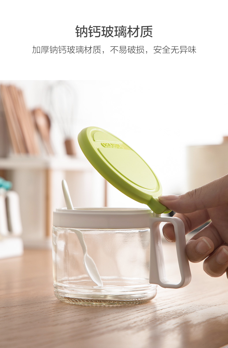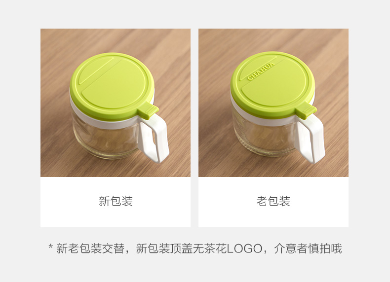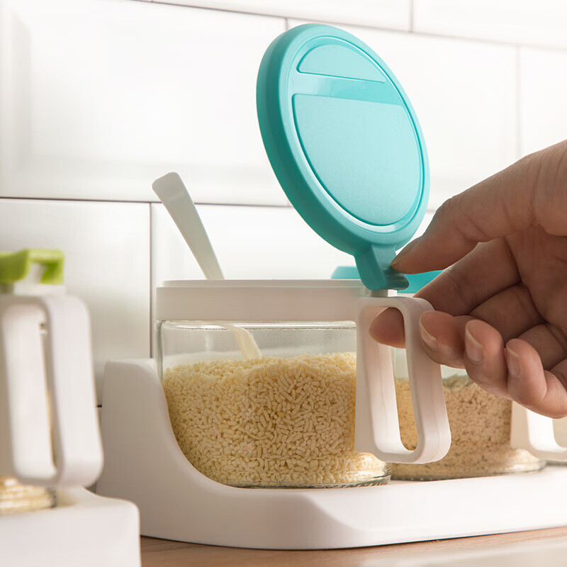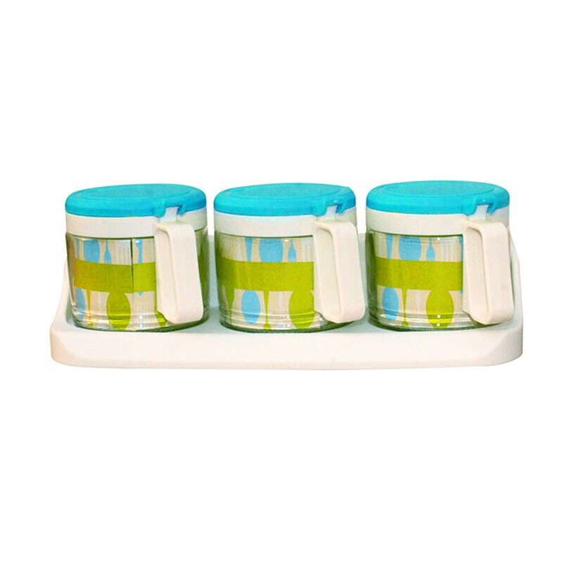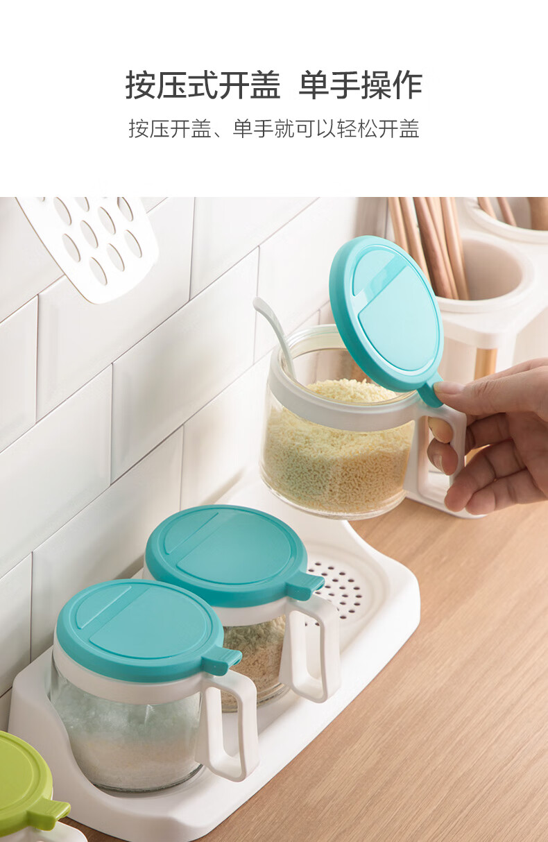茶花 三组圆形玻璃调味瓶调料盒架 盐罐大号烧烤佐料罐 盐盒300ML*3 6016 颜色随机 自营