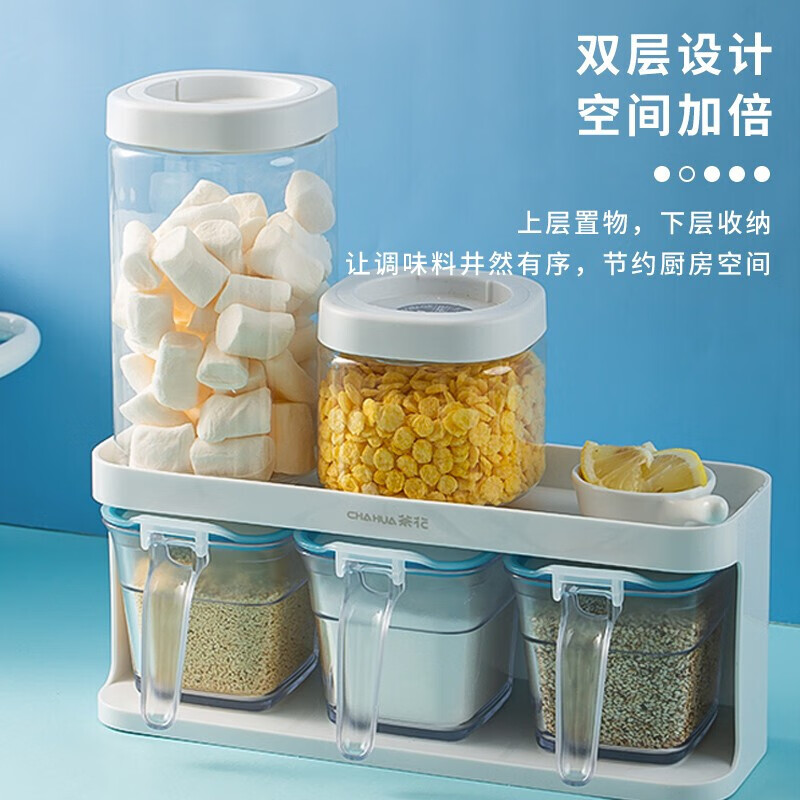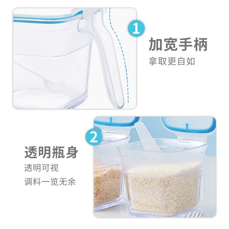 茶花 抗菌调料盒调味盒瓶调料罐 盐盒餐桌家用厨房用品盐罐调料缸香料理配料盒子收纳盒架 007003 自营