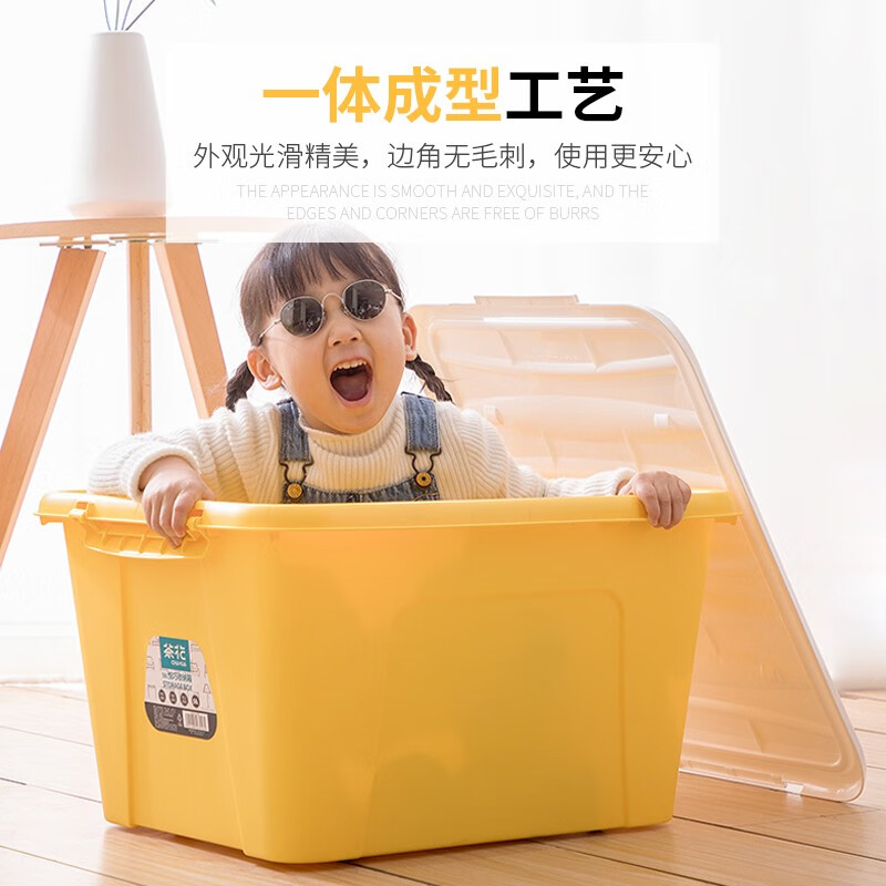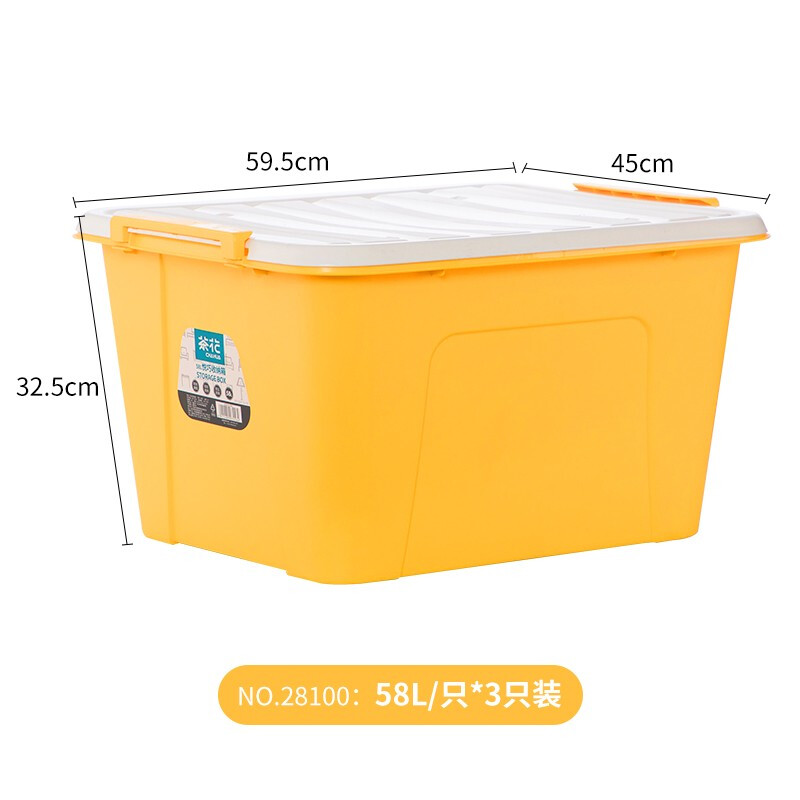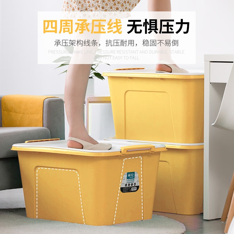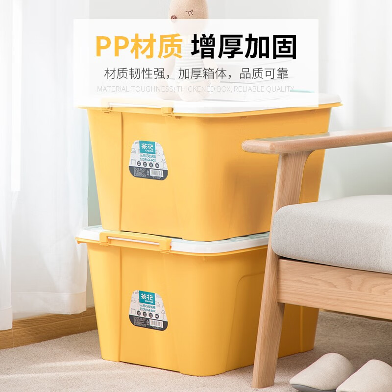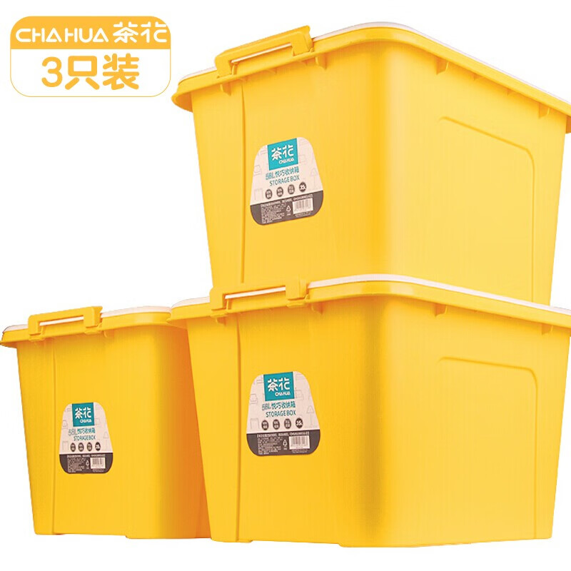 茶花 收纳箱大号 衣服储物箱 衣物棉被整理箱子 玩具书籍塑料箱58L 黄色 3支装 自营