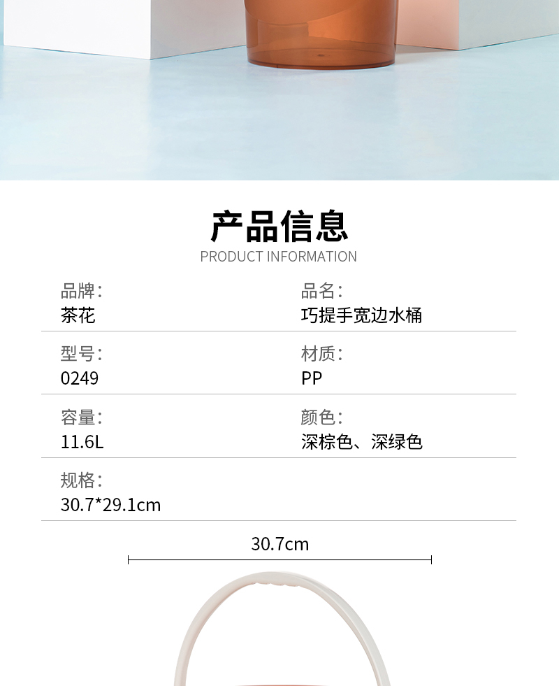 茶花 水桶泡脚桶洗衣圆桶家用储水桶洗车大号大容量加厚提手宽边拖把桶塑料桶子 11L 0249 自营