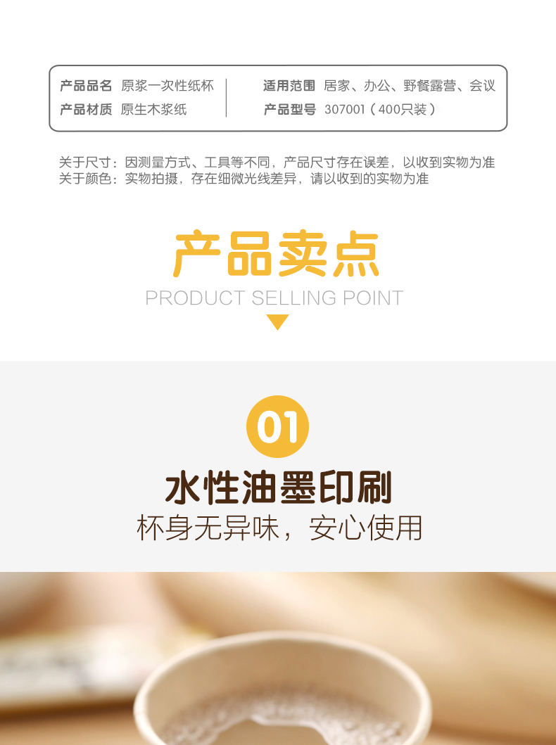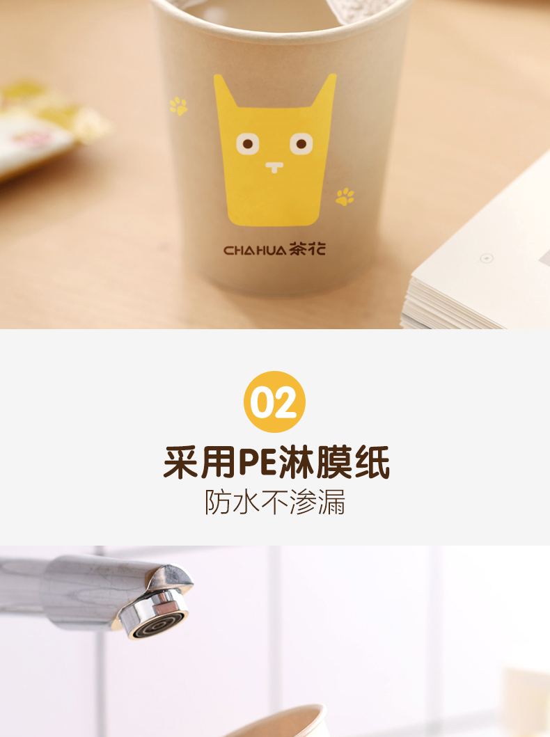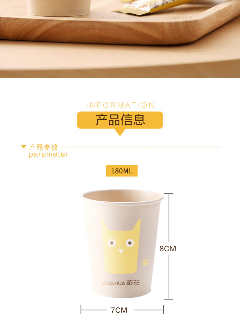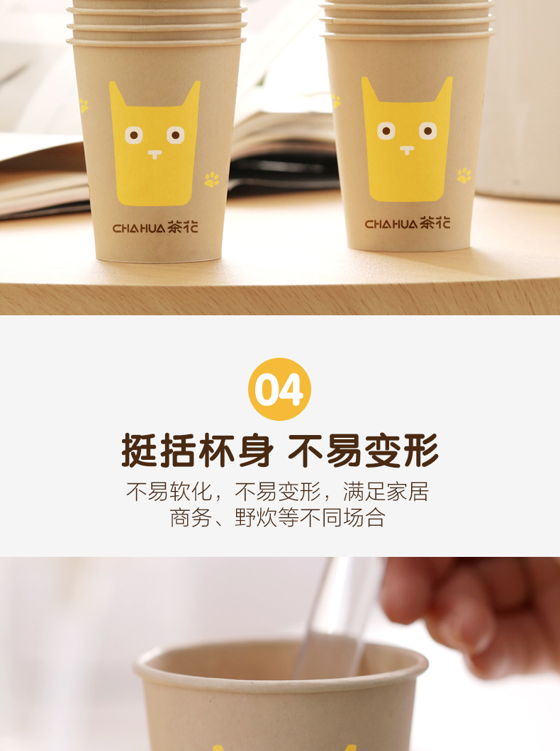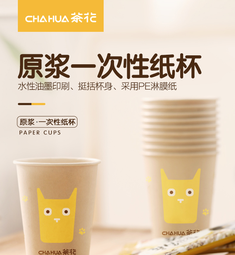 茶花 一次性纸杯子大号 整箱原浆本色无蜡淋膜加厚商务纸杯茶杯180ml饮料杯咖啡杯400只大包装10包 自营