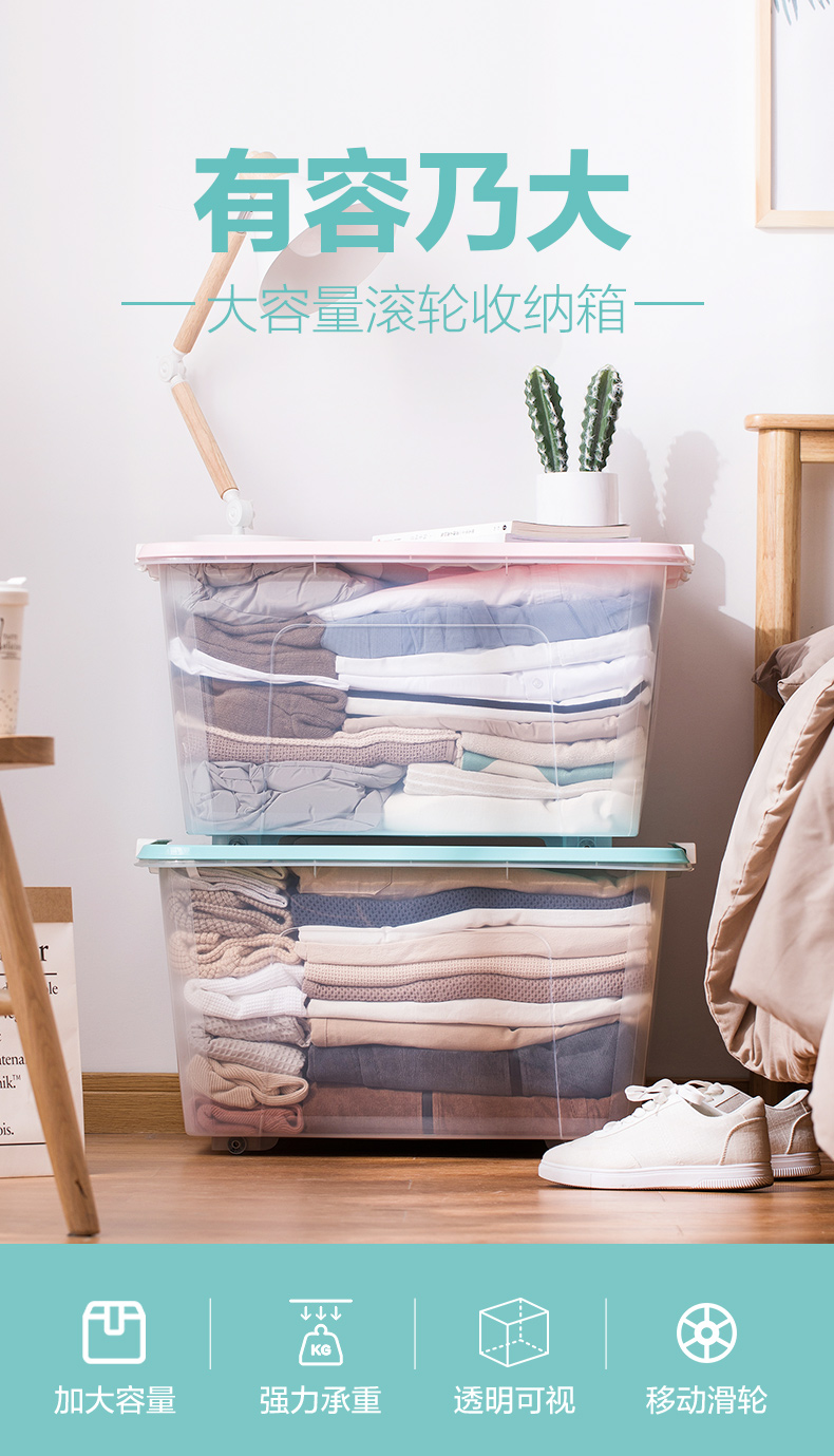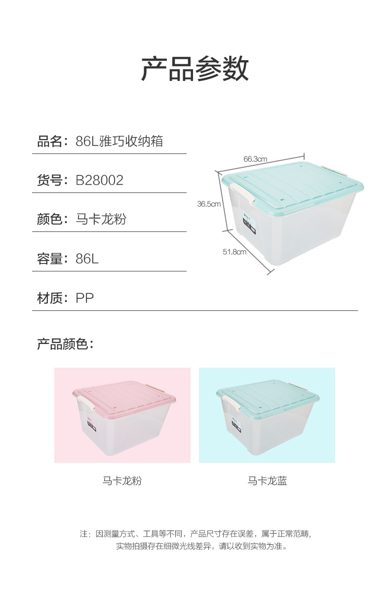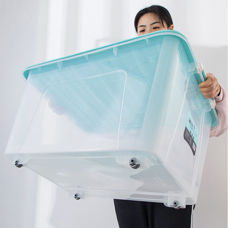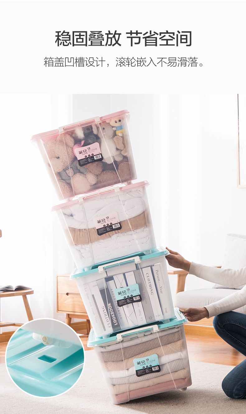 茶花 收纳箱大号 衣服储物箱 衣物棉被整理箱子 玩具塑料箱透明86L 粉 3支装 自营
