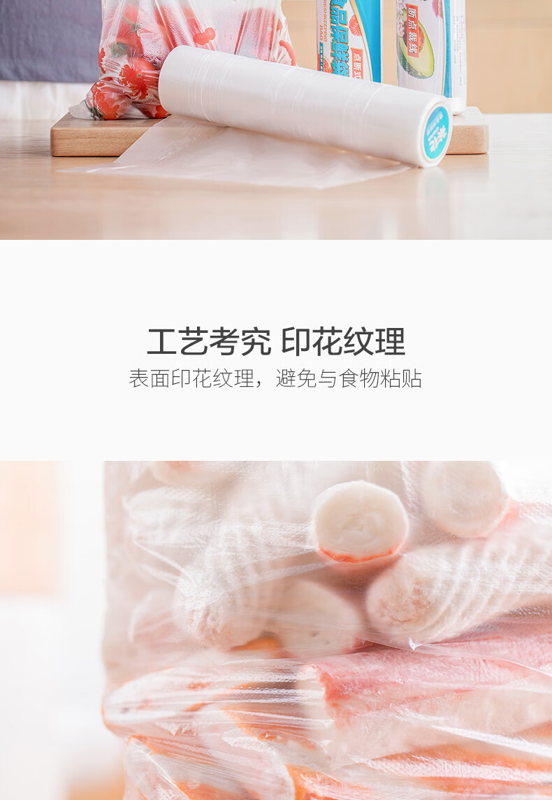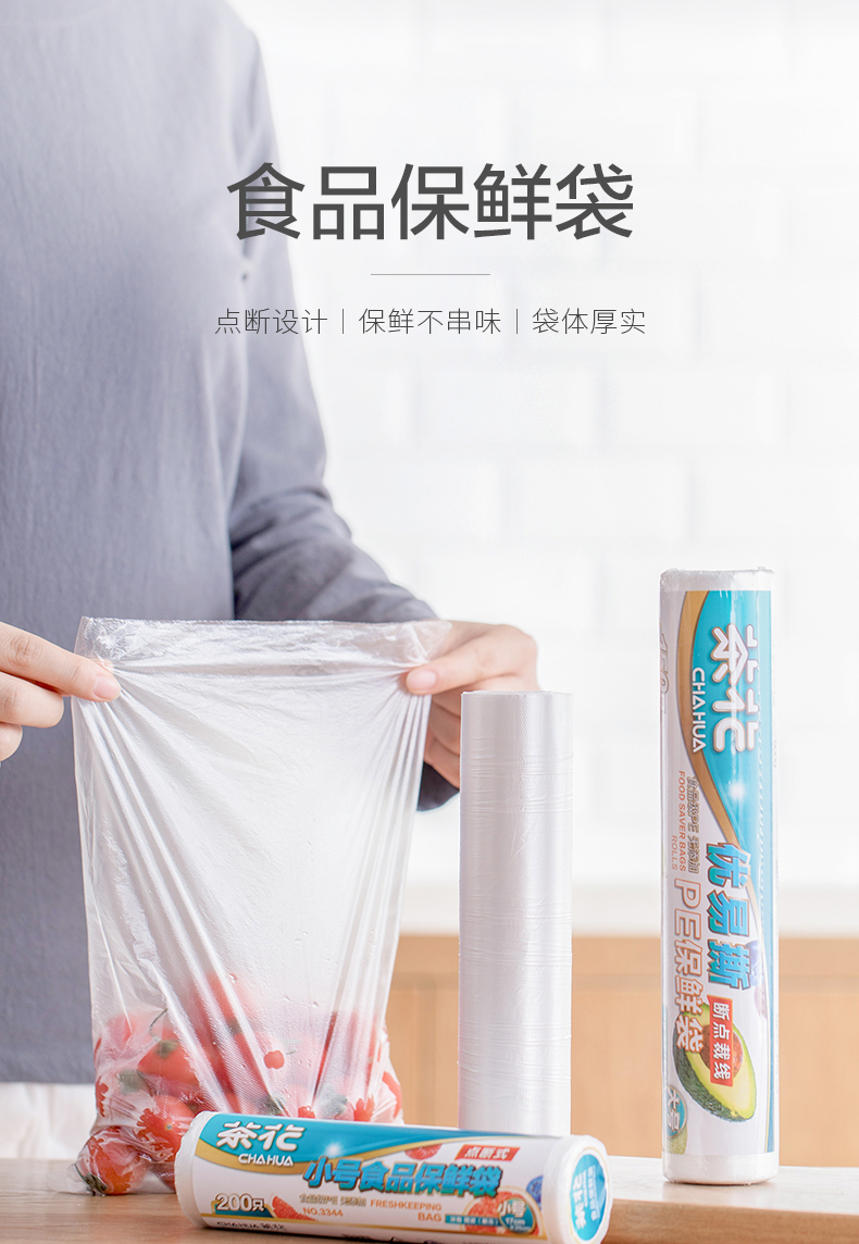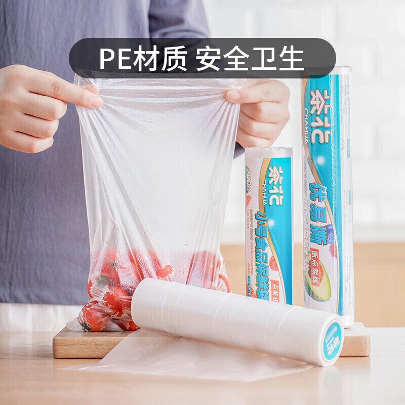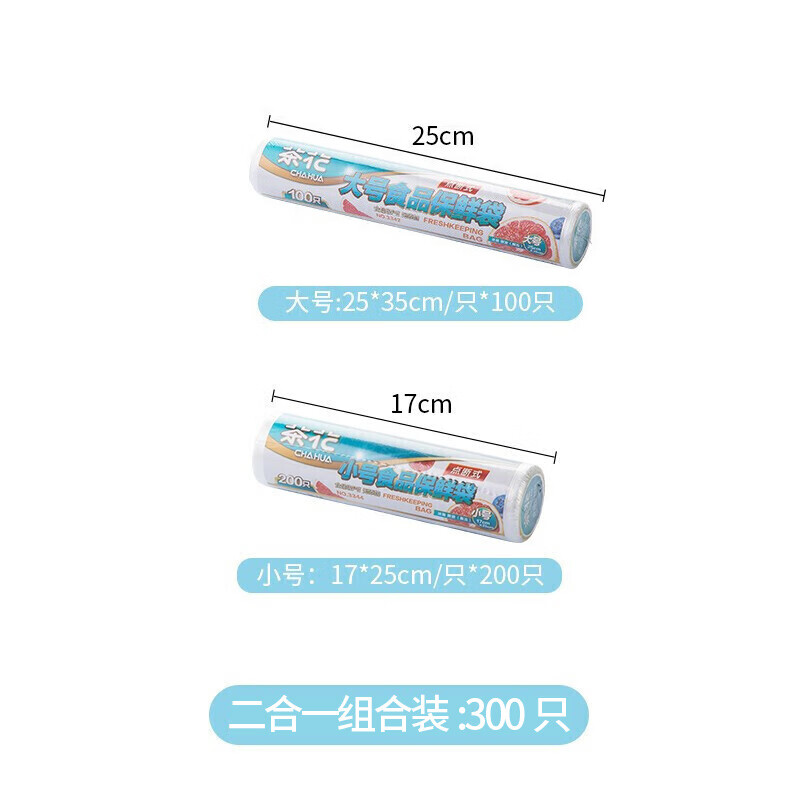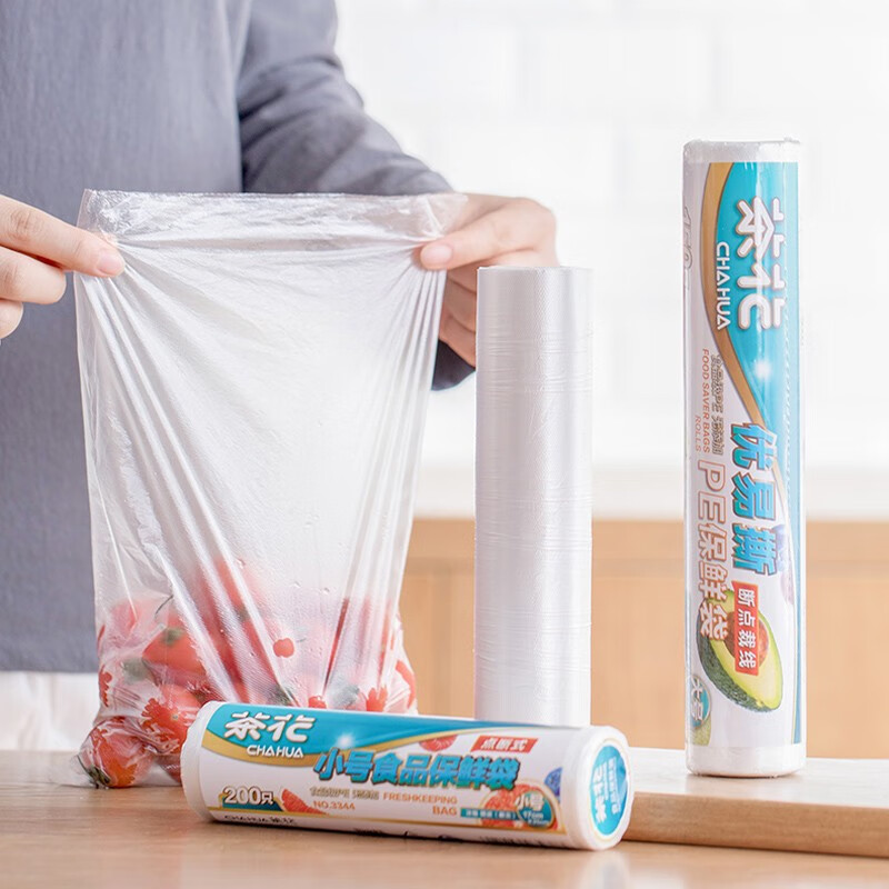 茶花 保鲜袋加厚点断式食品级密封袋 分装保险收纳冰箱保鲜解冻连卷袋子蔬菜食品袋大号中小号组合装 自营