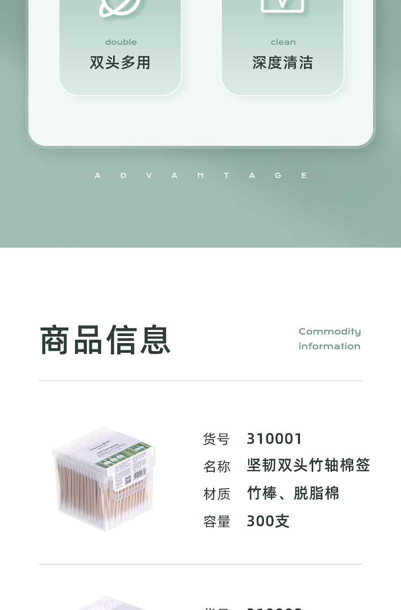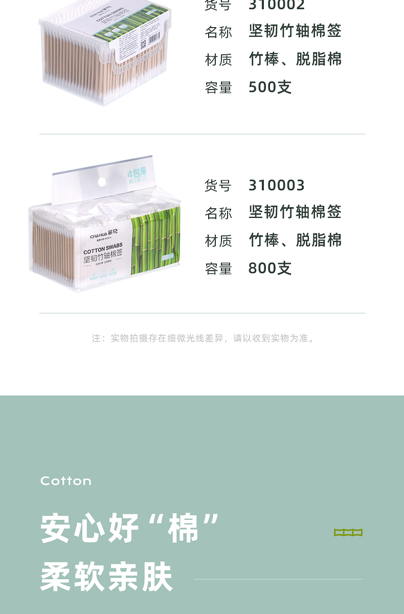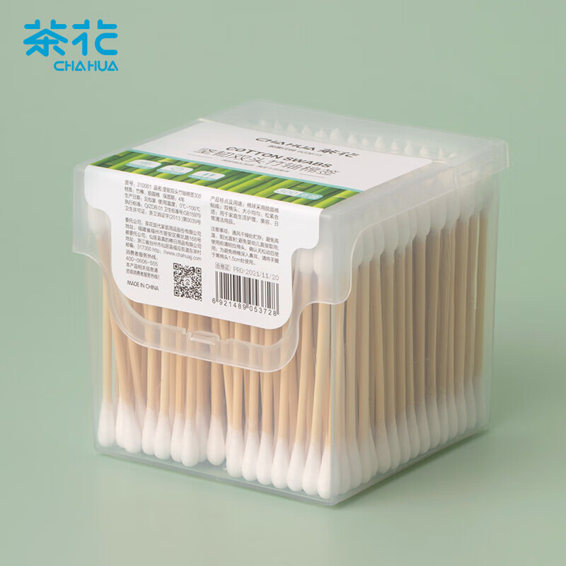 茶花 棉签掏耳朵双头坚韧竹轴尖头化妆棉棒(300支)310001* 自营