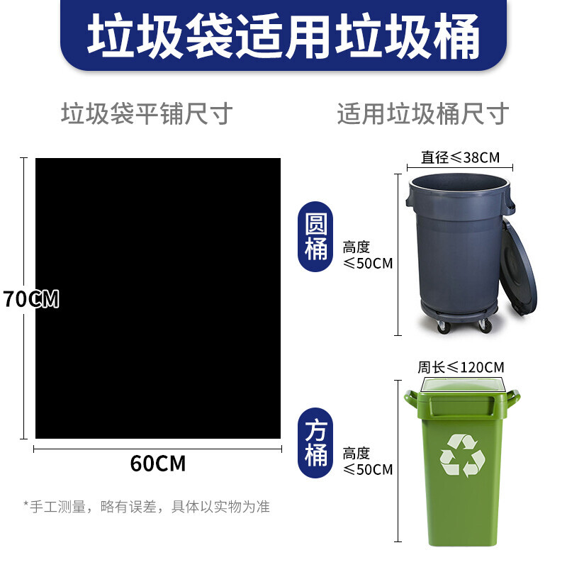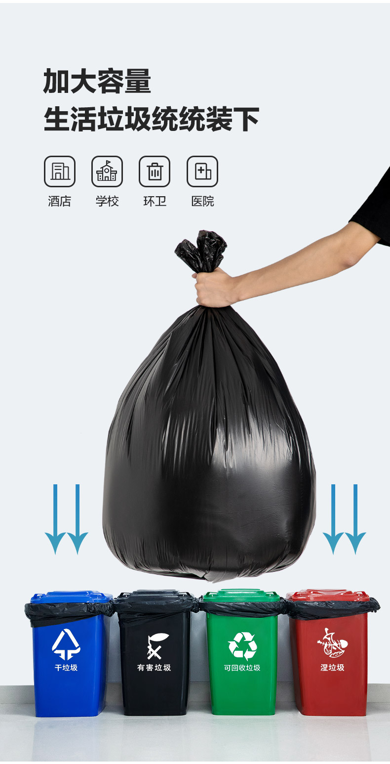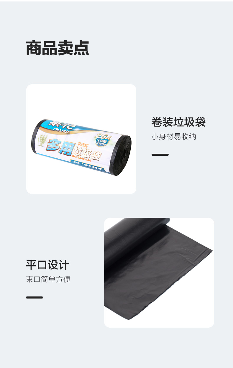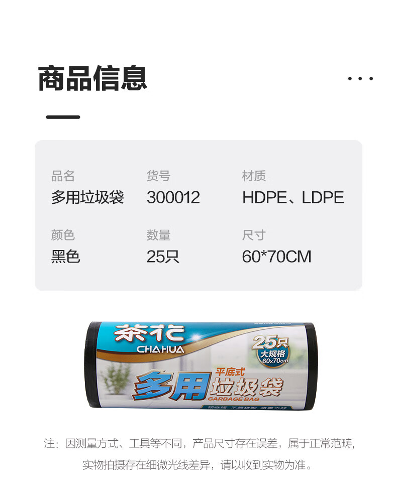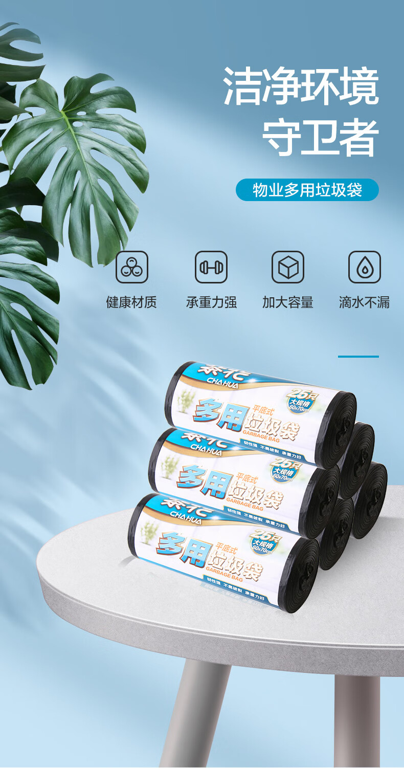 茶花 物业垃圾袋加厚25只大号60*70cm黑色多用途商用环卫垃圾桶袋300012* 自营