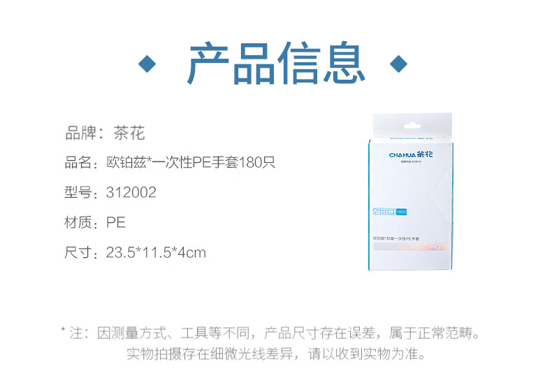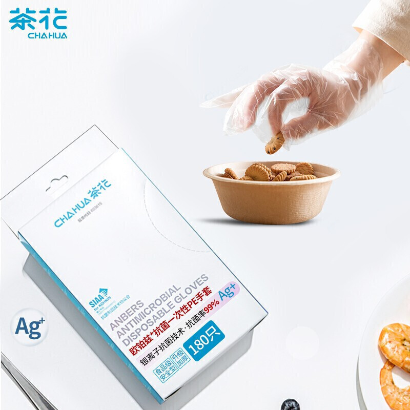 茶花一次性手套抗菌加厚抽取式卫生食品用手套180只312002* 自营