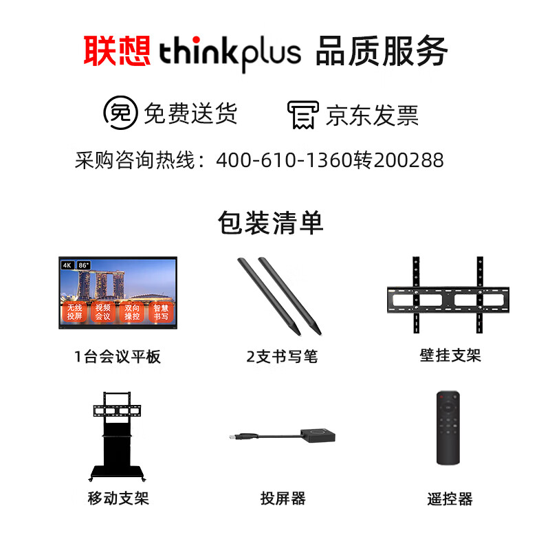 联想thinkplus会议平板S86 Pro 86英寸大智慧屏电子白板智能电视视频会议一体机+传屏器+移动支架 自营