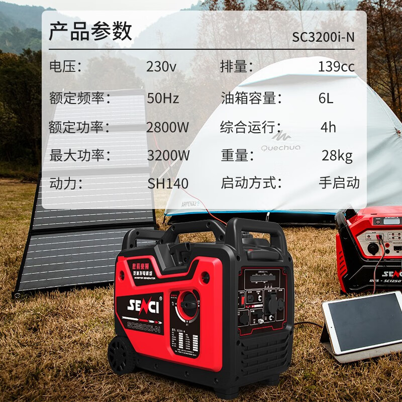 神驰发电机220v汽油家用小型静音数码变频迷你户外房车车载野营摆摊手提便携式移动充电 3200W单相 手启动 轻便款 自营