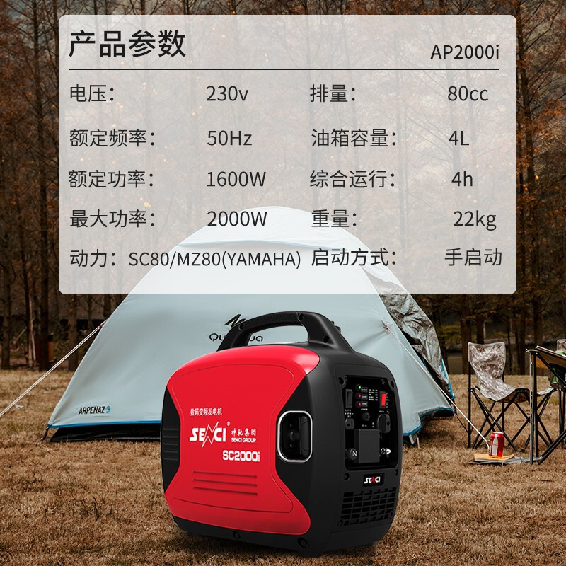 神驰发电机220v汽油家用小型静音数码变频迷你户外房车车载野营摆摊手提便携式移动充电 2000W单相 手启动 Yamaha动力 自营