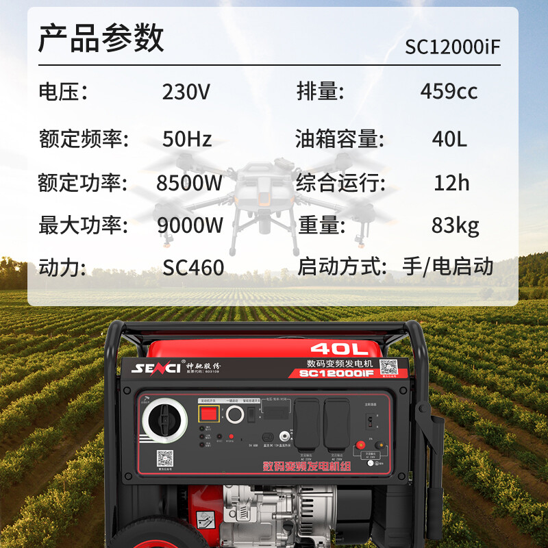 神驰变频汽油发电机4kw家用220v轻型户外施工车载电动汽车9千瓦无人植保机充电 9000W变频 手/电/遥控启动 自营