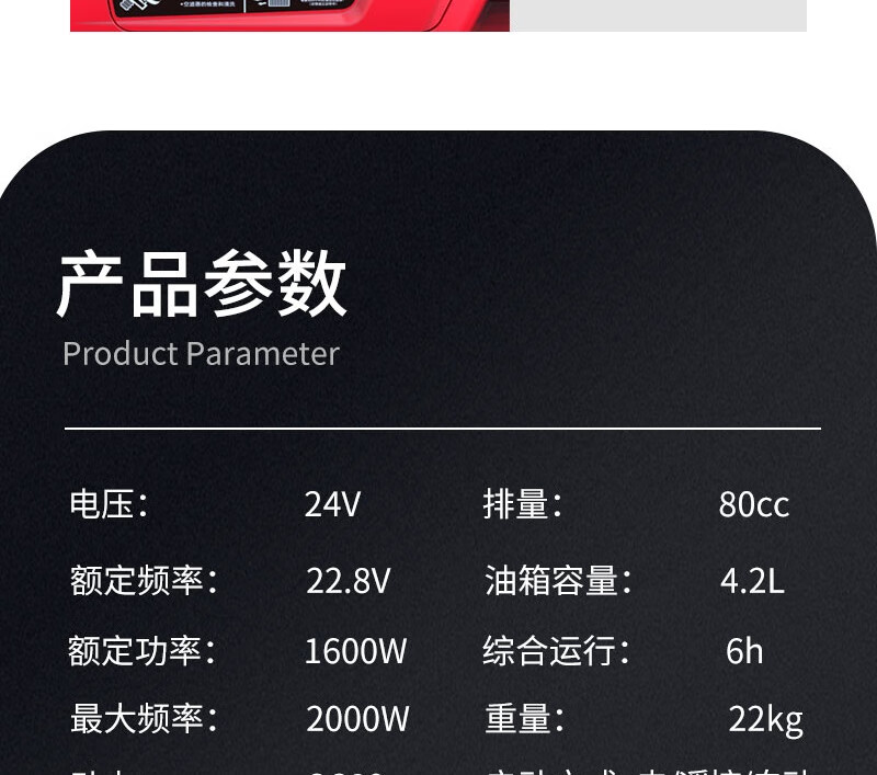 神驰24v发电机汽油手提式小型变频便携式遥控自启车载房车直流24伏充电货车驻车空调 24v发电机自启停 1.6米线 自营
