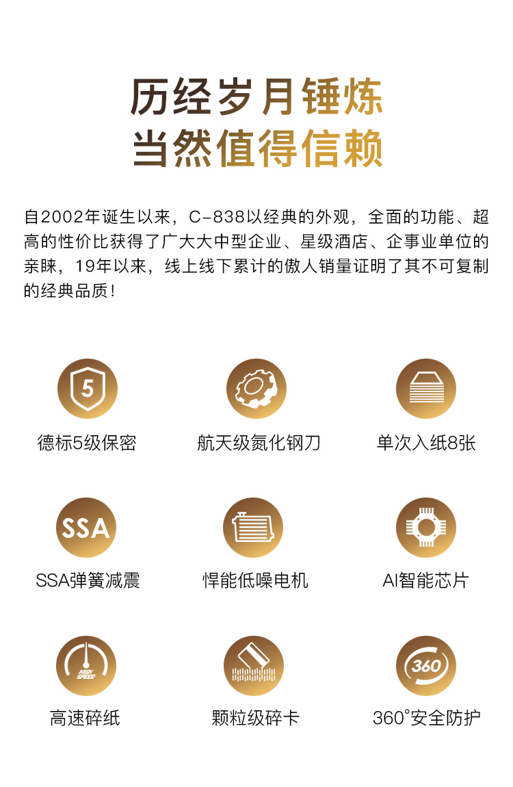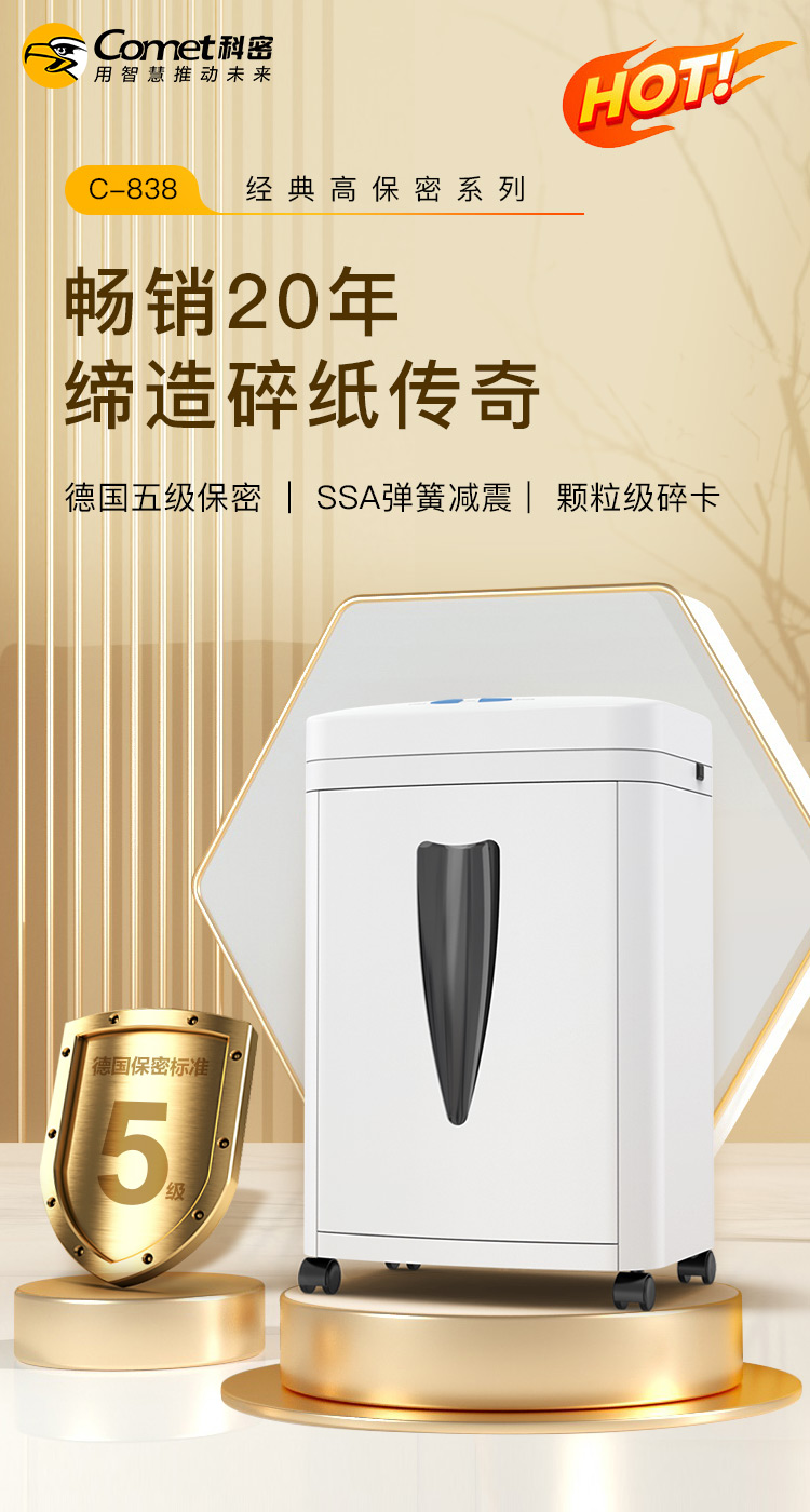 科密(comet)5级高保密办公商用碎纸机(单次8张 2*10mm微米级 20L 可碎卡/订书针)C-838 自营
