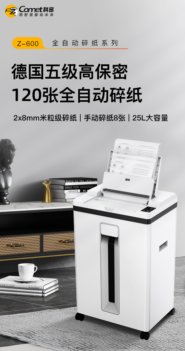 科密(comet)5级保密办公全自动碎纸机(全自动120张 手动8张 持续30分钟 25L 可碎卡、订书针)Z-600 自营