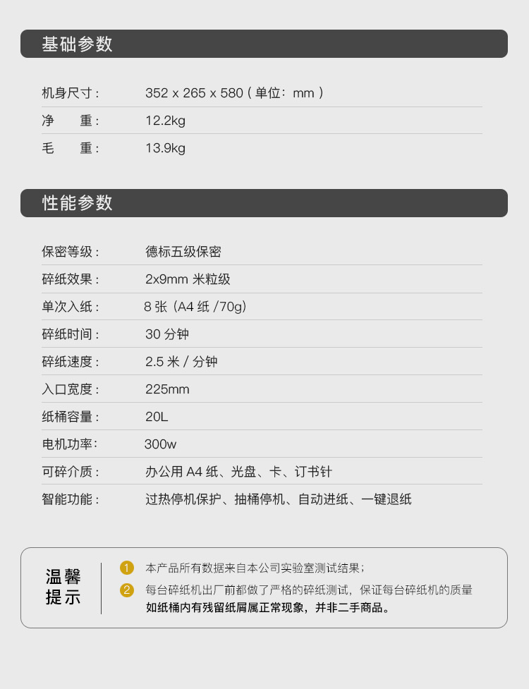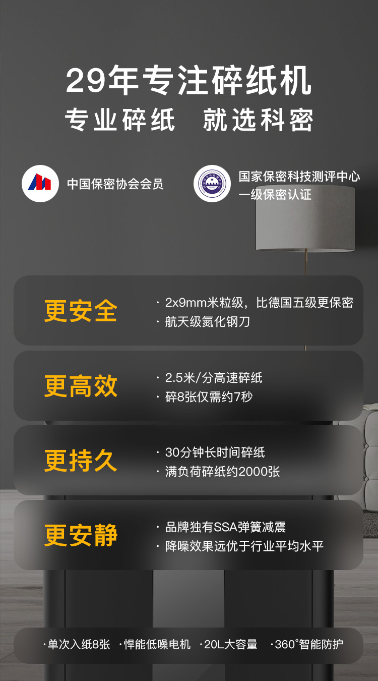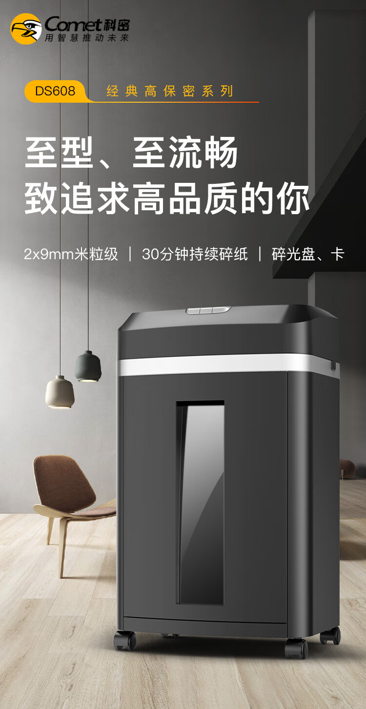 科密(comet)5级高保密长时间办公商用碎纸机(单次8张 持续30分钟 20L 可碎卡、光盘、订书针) 自营