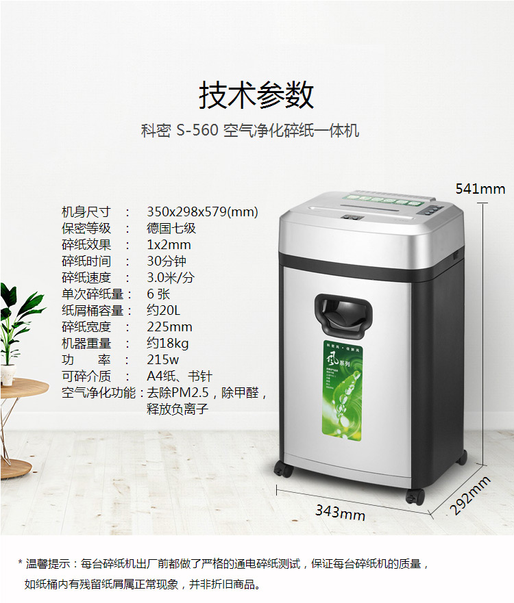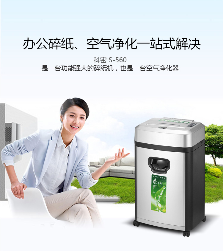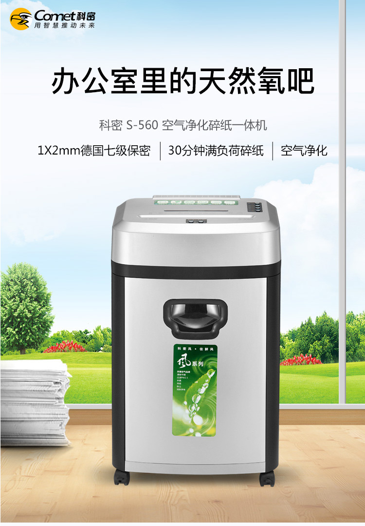 科密(comet)S-560 碎纸机 办公商用家用除菌净化 德国7级保密多功能文件粉碎机 离子空气净功能 自营
