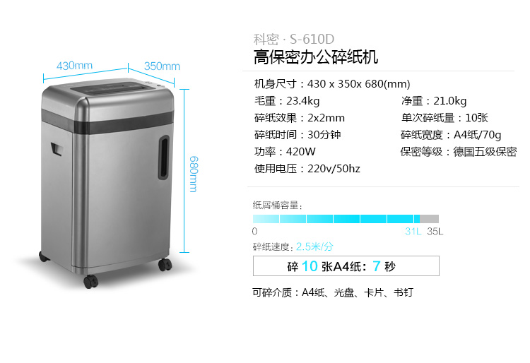 ¥57599.00科密(comet)金盾系列 G-3685 商用办公高保密碎纸机 大型长时间大吞吐文件光盘卡粉碎机