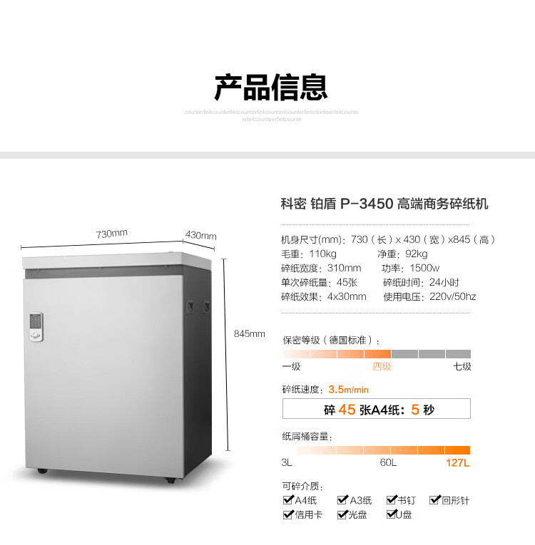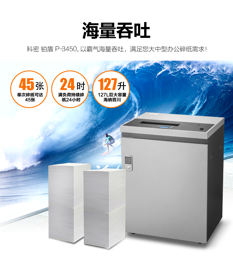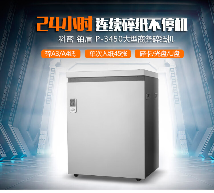 科密(comet)P-3450 24小时大型工业级高速碎纸机 127L大容量办公商用文件颗粒粉碎机 自营