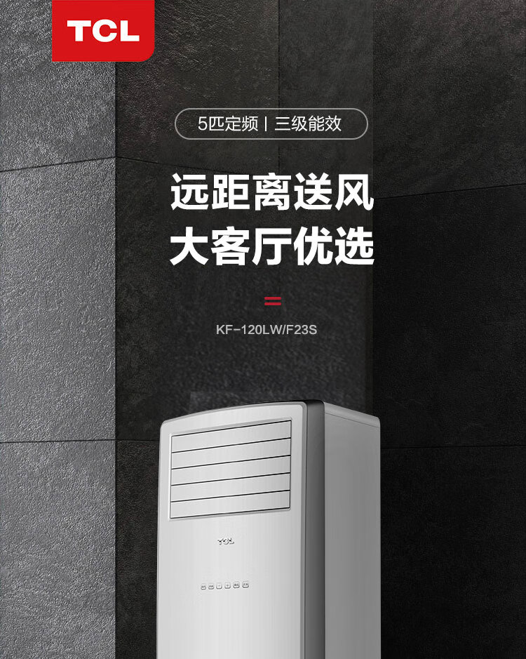 TCL空调 5匹 单冷 三级能效 立柜式空调 KF-120LW/F23S标准安装 380V 自营