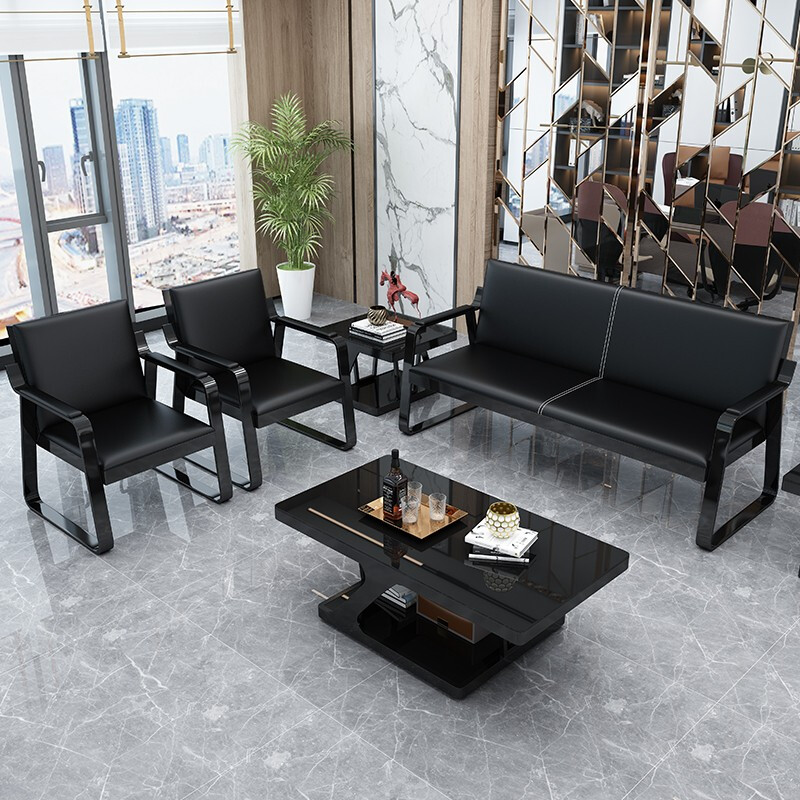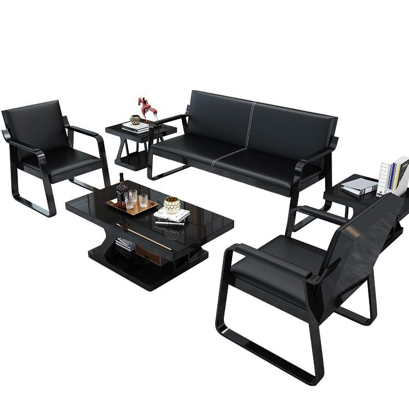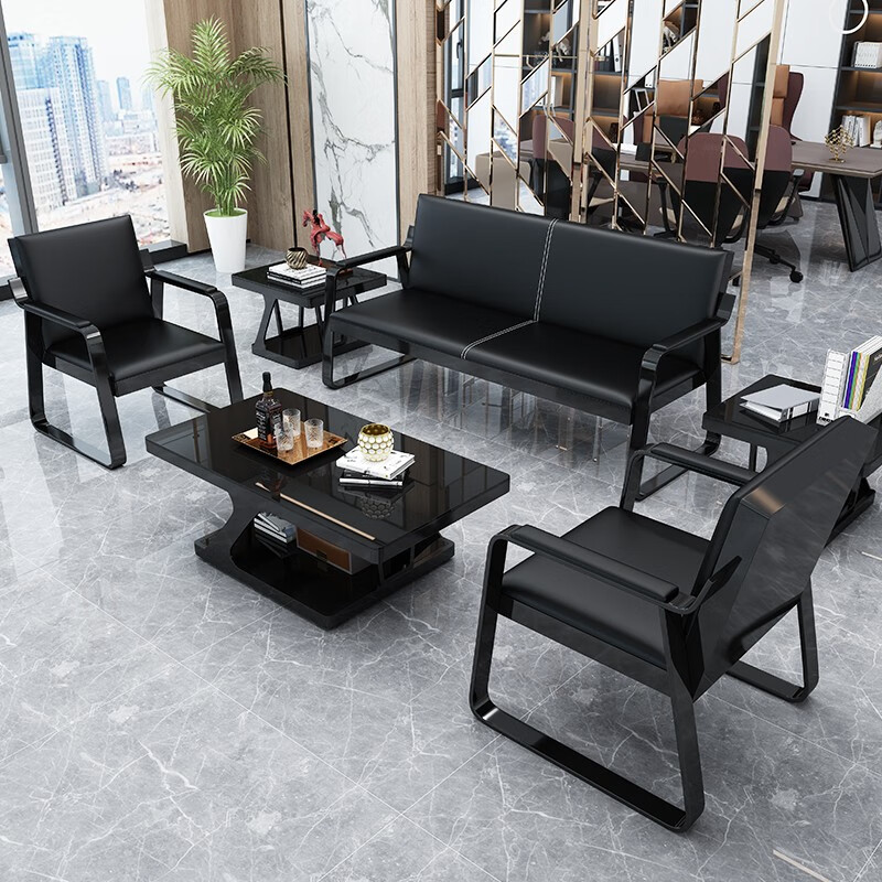 九骏道办公沙发简约现代办公室沙发茶几组合商务接待会客1+3+1 头层牛皮沙发