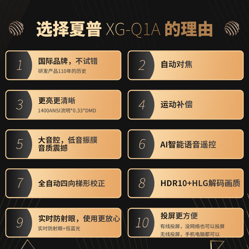 夏普(SHARP)XG-Q1A 投影仪家用 投影机 智能家庭影院(智能对焦 四向自动梯形校正 运动补偿 语音遥控) 自营