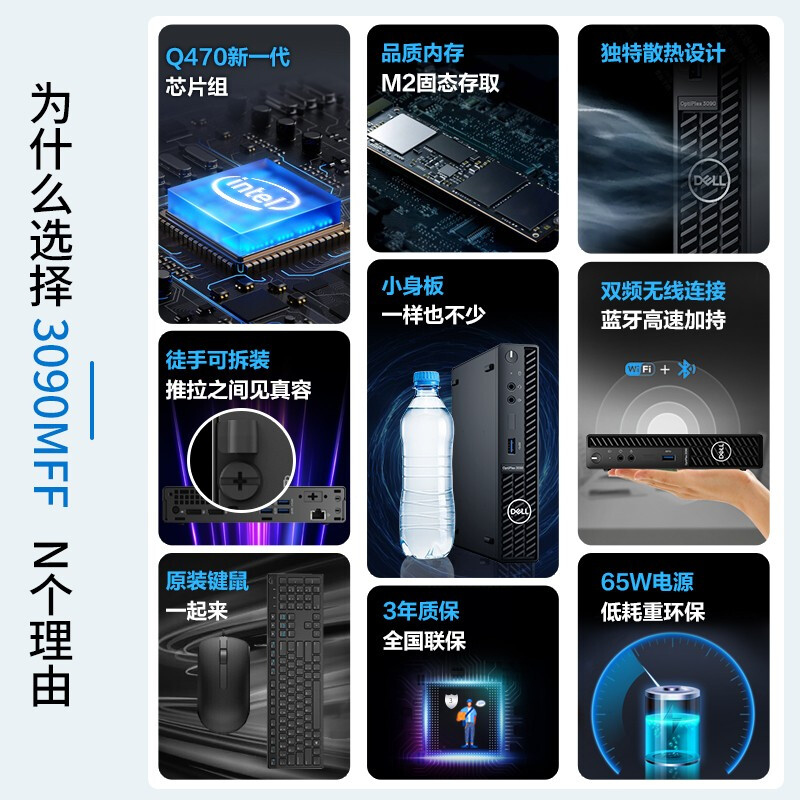 戴尔(DELL) 台式机迷你OptiPlex 3090MFF微型电脑小主机客厅HTPC 3090MFF标配 G6405T/4G/256G 自营