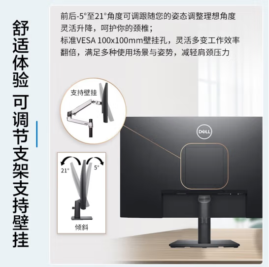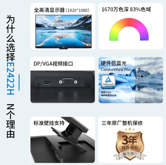 戴尔(DELL) E2422H 23.8英寸IPS广视角显示器 (DP+VGA接口) 自营