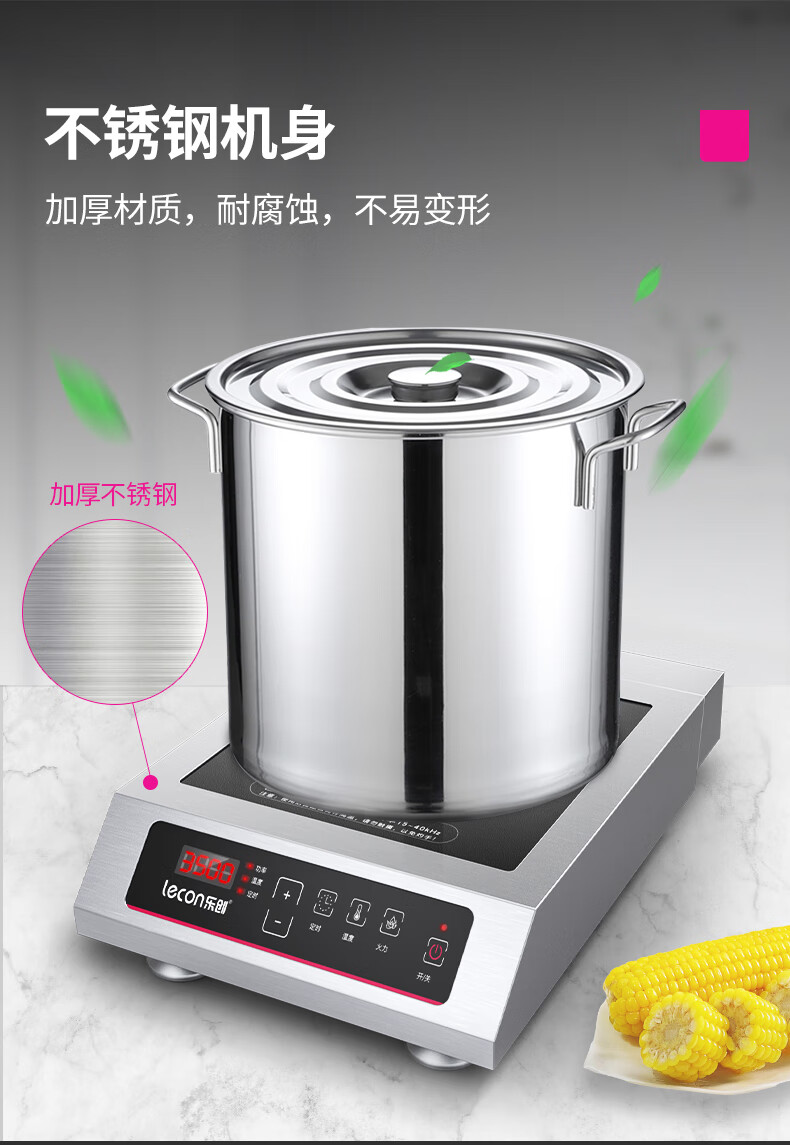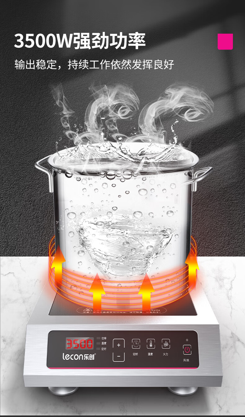 乐创( lecon) 商用电磁炉3500W大功率平面不锈钢电磁灶 食堂餐厅酒店按键爆炒大火力电池炉 LC-SY3500 自营