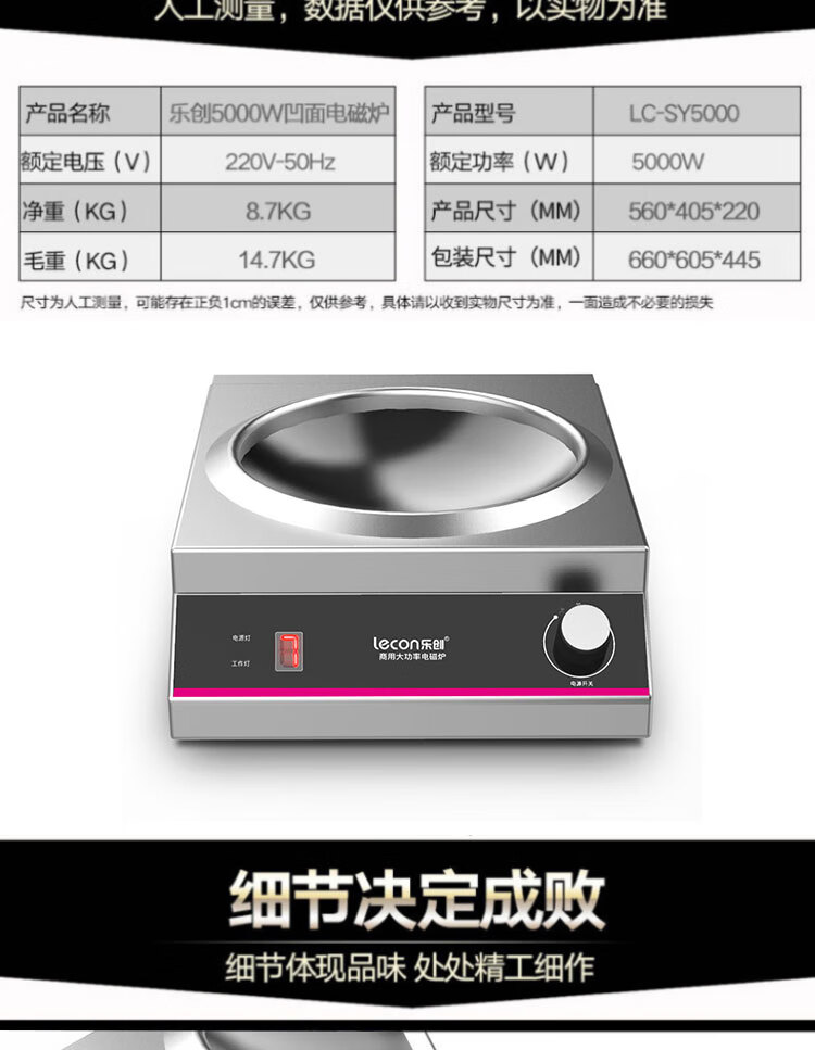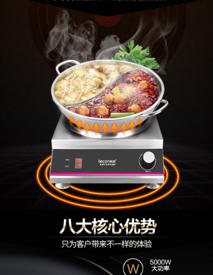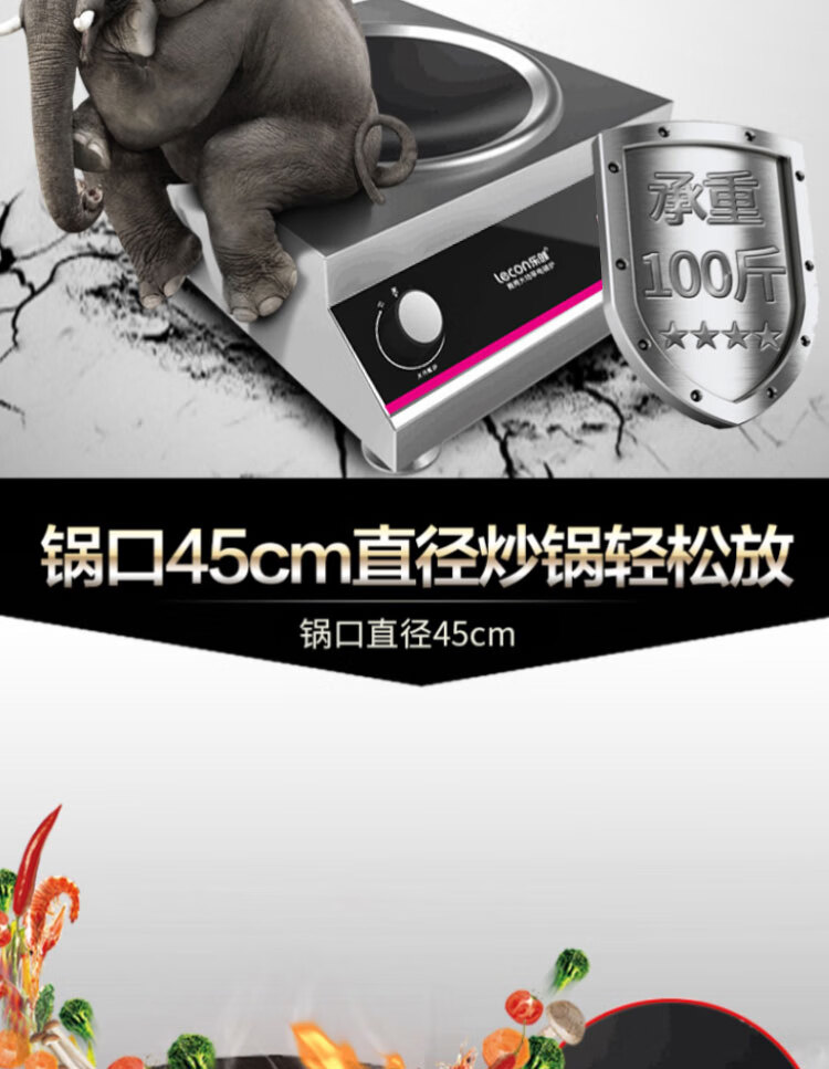 ¥5740.00乐创(lecon)商用单头大锅灶 锅径900 25KW大功率炒菜电磁灶 201不锈钢工程款 LC-J-DC900E25