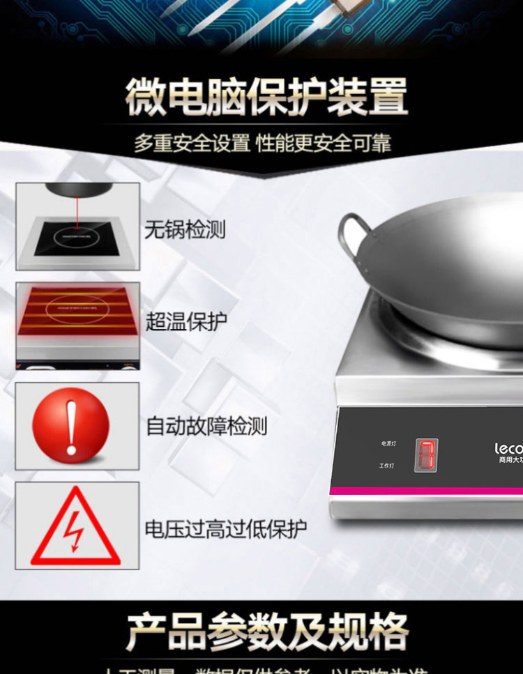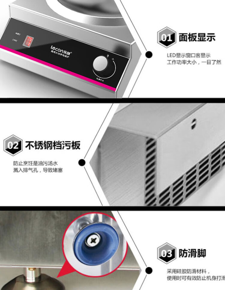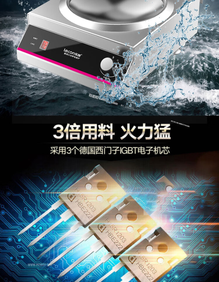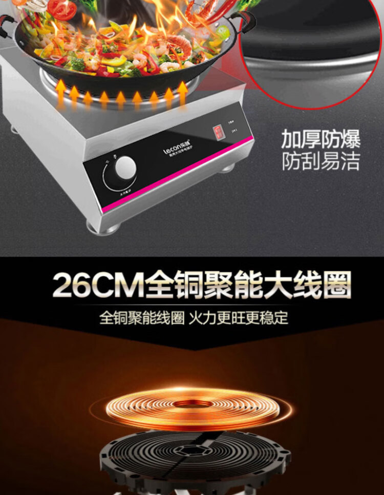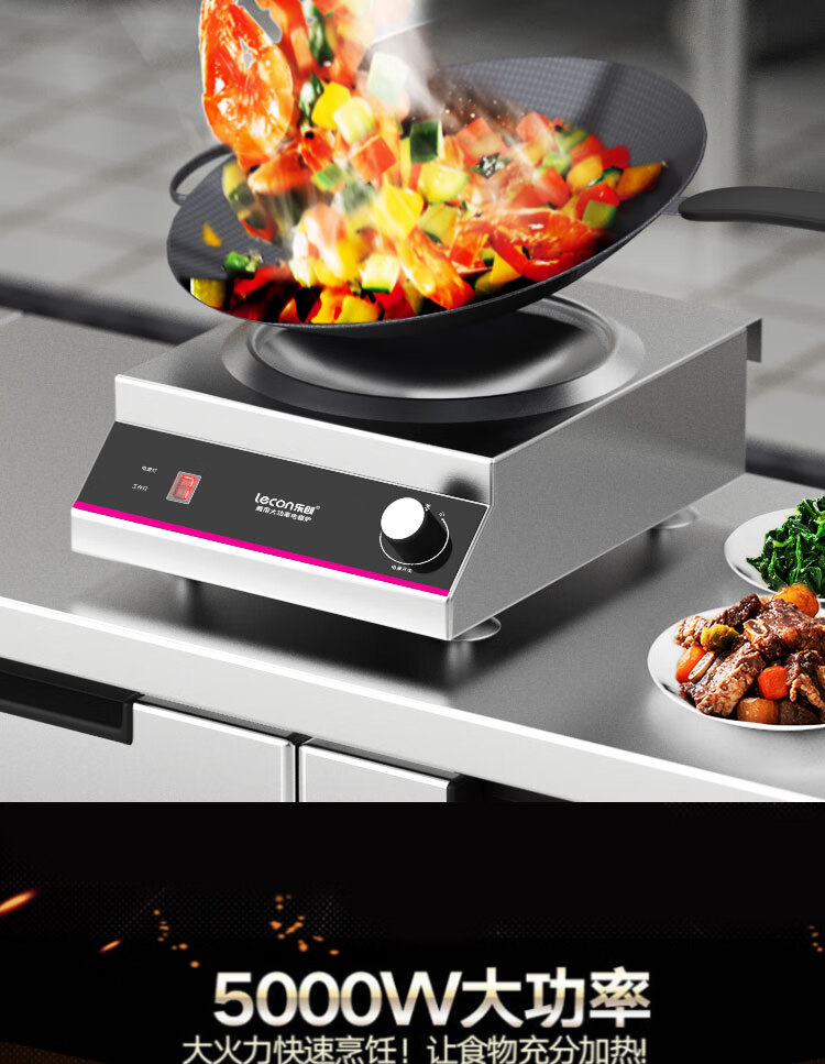 ¥10540.00乐创(lecon)商用单头单尾小炒灶 15KW大功率食堂炒菜电磁灶 201不锈钢工程款 LC-J-DXC400