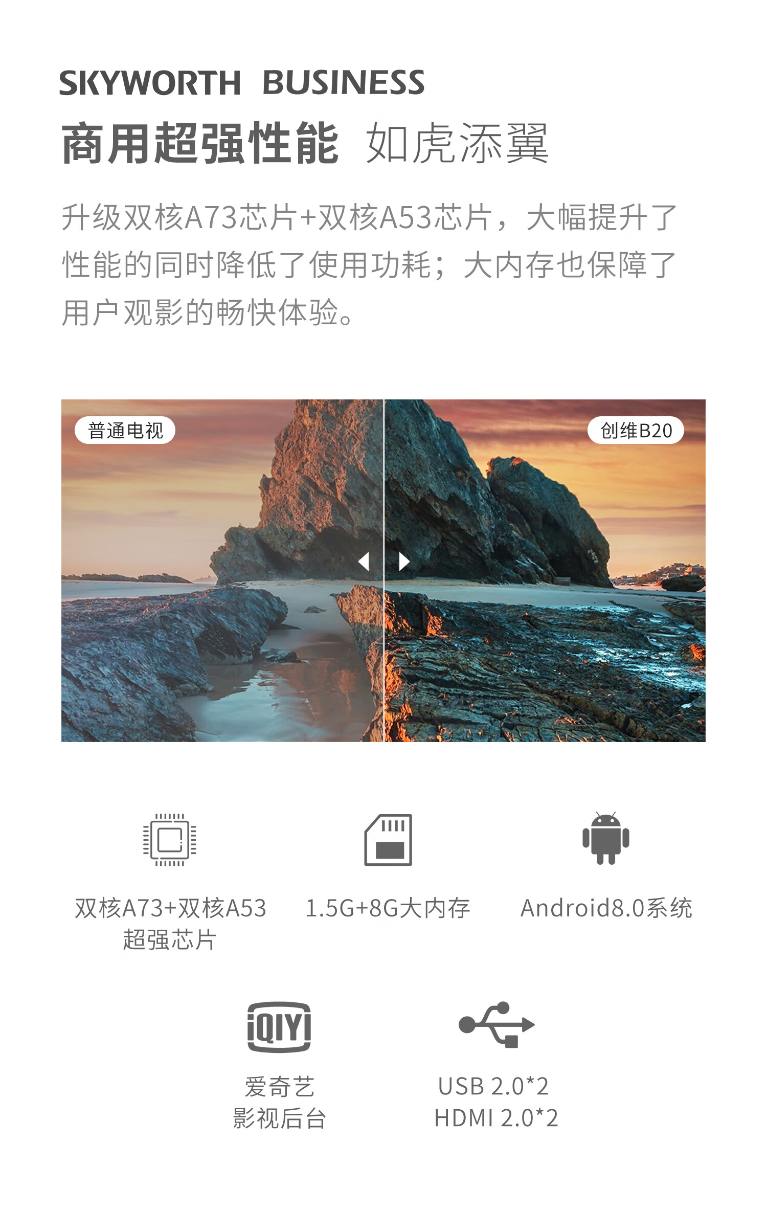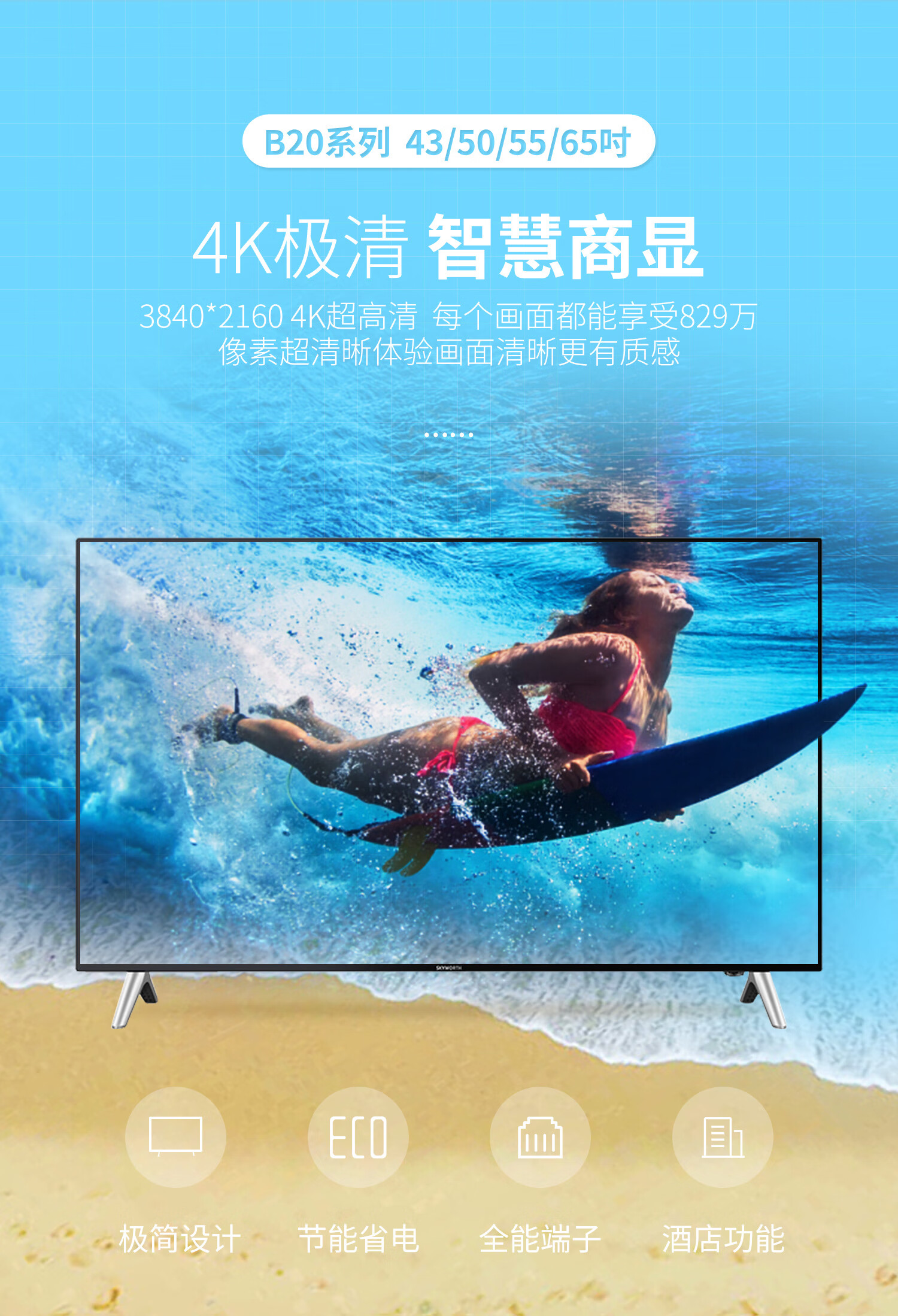 创维(SKYWORTH)65B20 65英寸4K超高清 HDR ECO节能 商用电视机 企业采购 自营