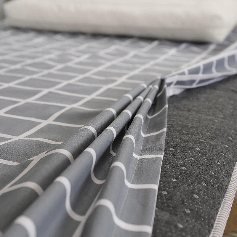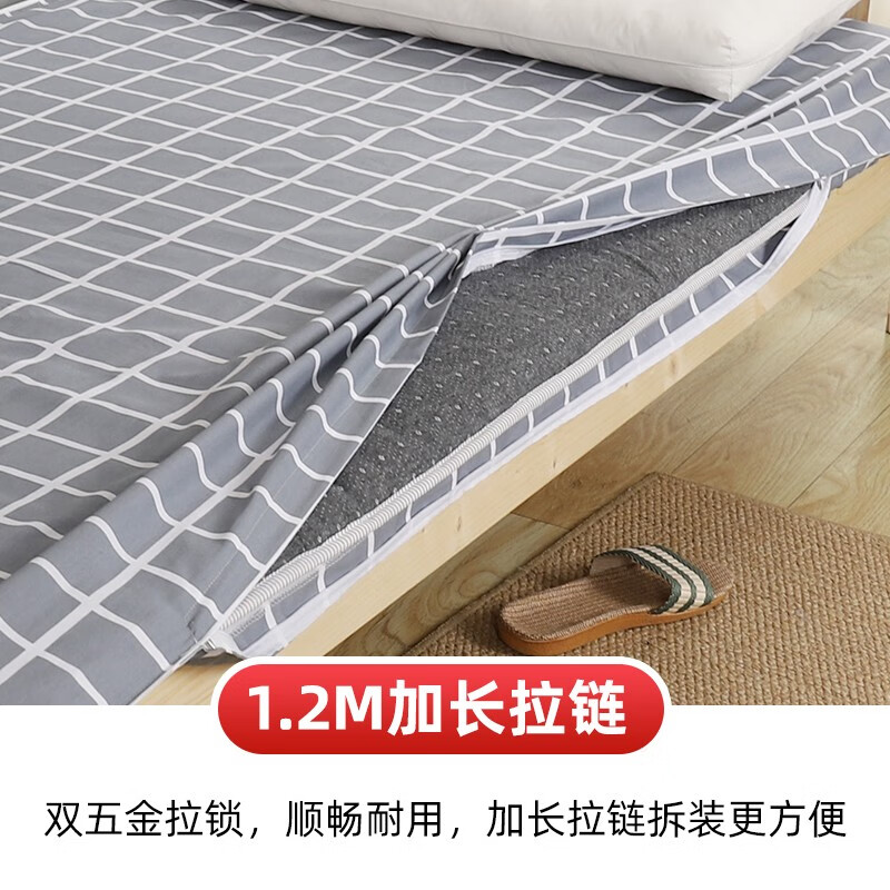 柳伊 双面全棉宿舍单人床垫套保护套100%纯棉斜纹床笠全包简约格子0.9米学生褥子罩床单拉链褥套 格调年华【纯棉床垫套】 90x190cm【预留缩水量】 自营